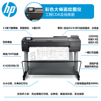 ¥ 37000.00惠普(HP) 繪圖儀 A1A0t650\/730\/830大幅面寫真噴繪機打印機工程CAD及線條藍圖 T1600PS A0+36英寸6色雙紙軸