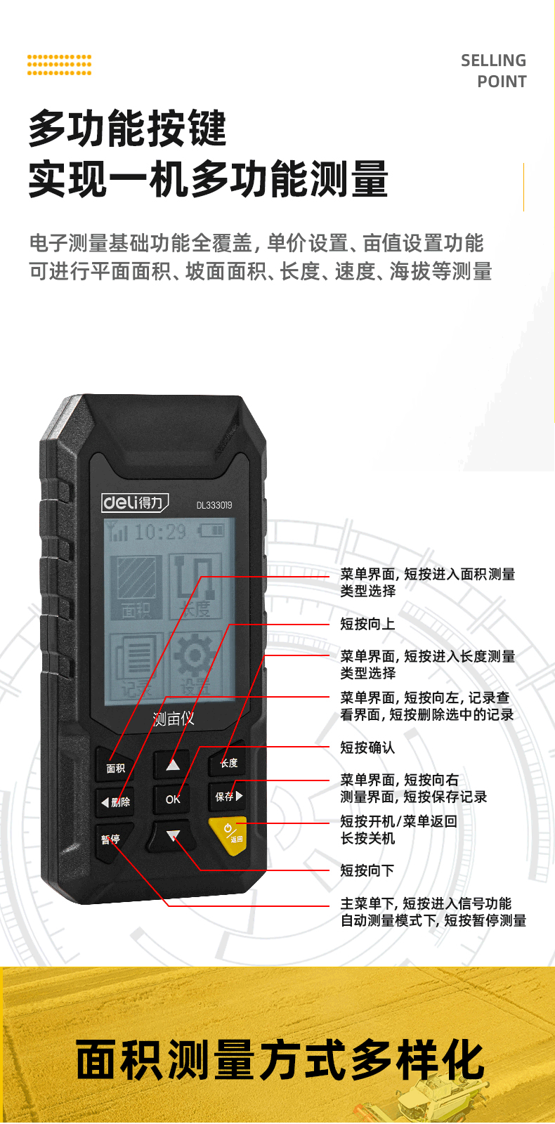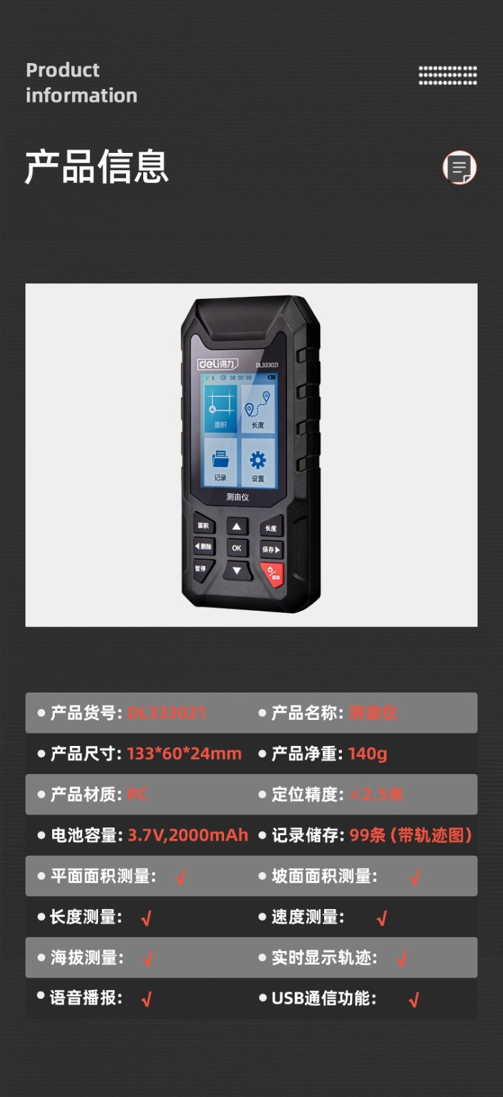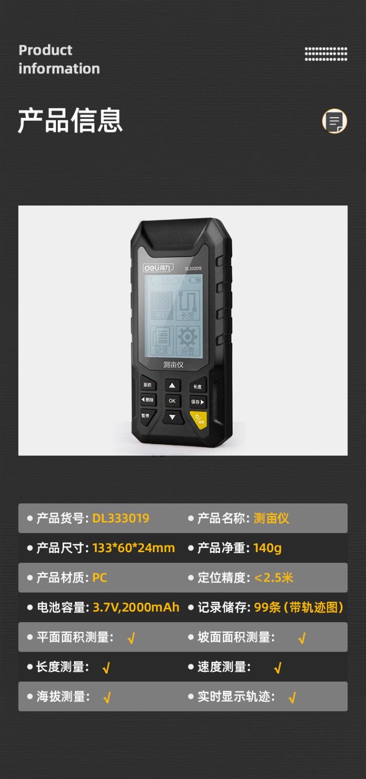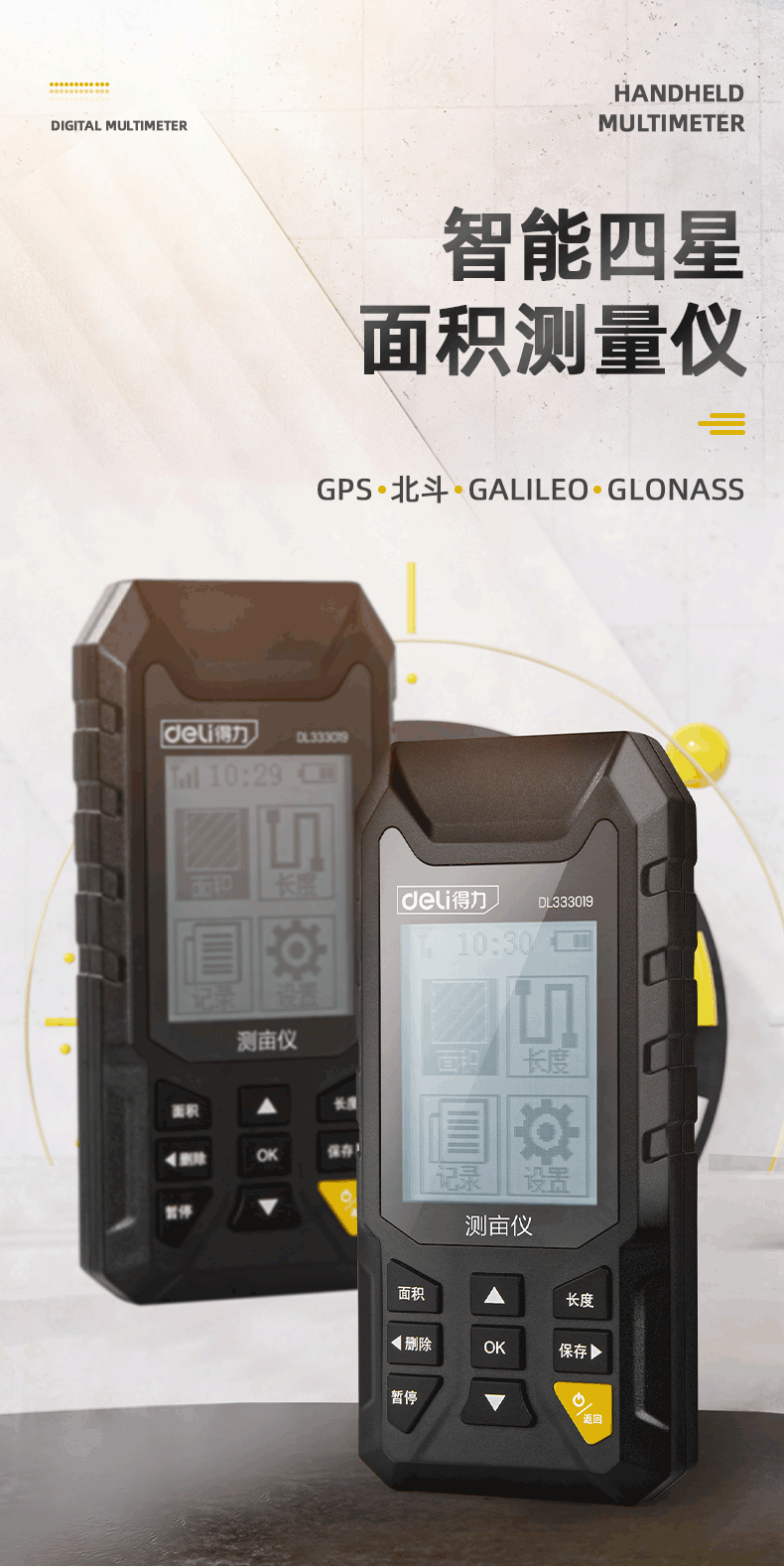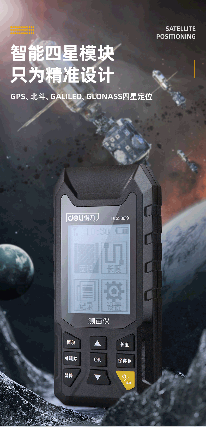 得力/deli DL333021 測距儀 測畝儀高精度手持GPS土地面積地畝測量儀收割機車載量地量田儀器可測面積長度速度海拔等 (彩屏語音款)測畝儀