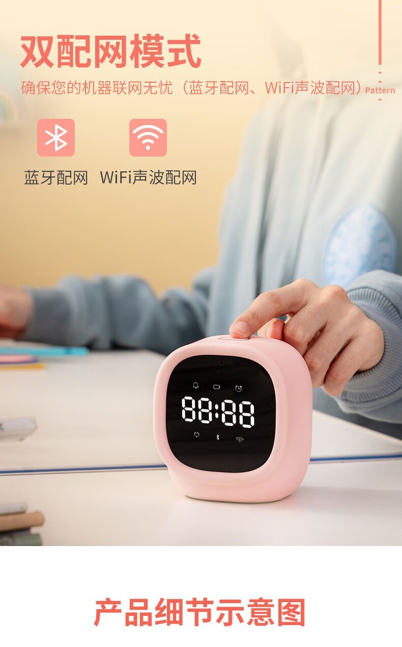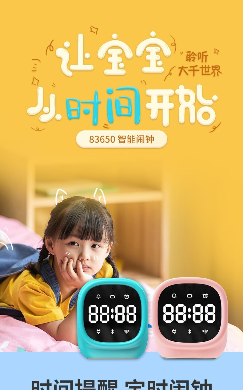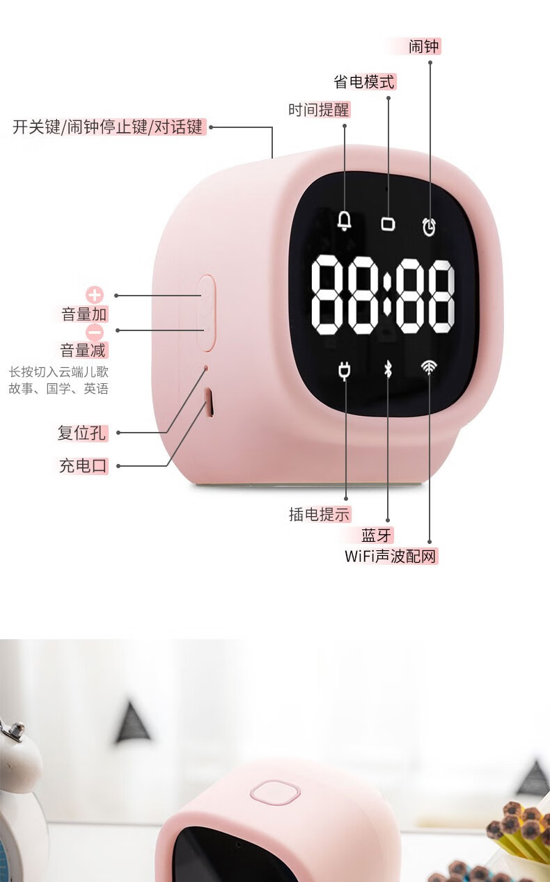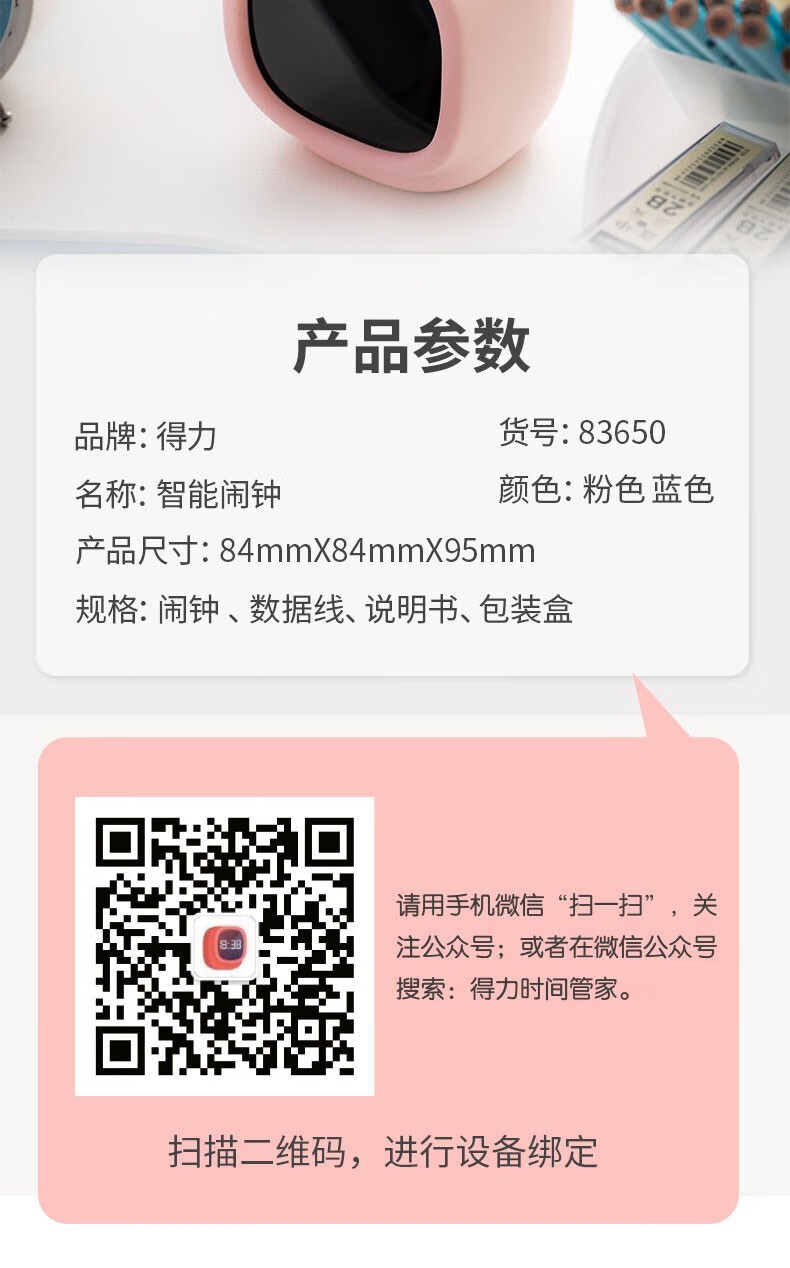 得力/deli 83650 座鐘 學生電子鬧鐘AI智能語音互動迷你多功能充電鬧鐘可愛卡通兒童禮物