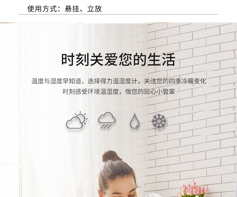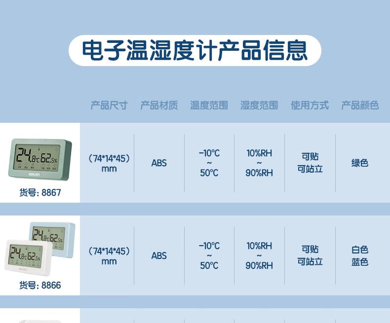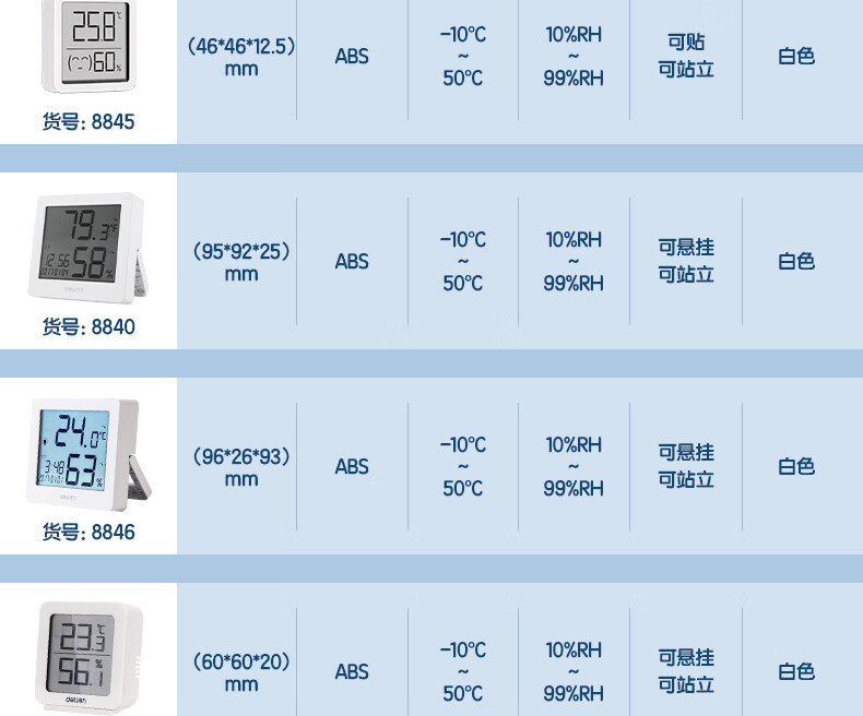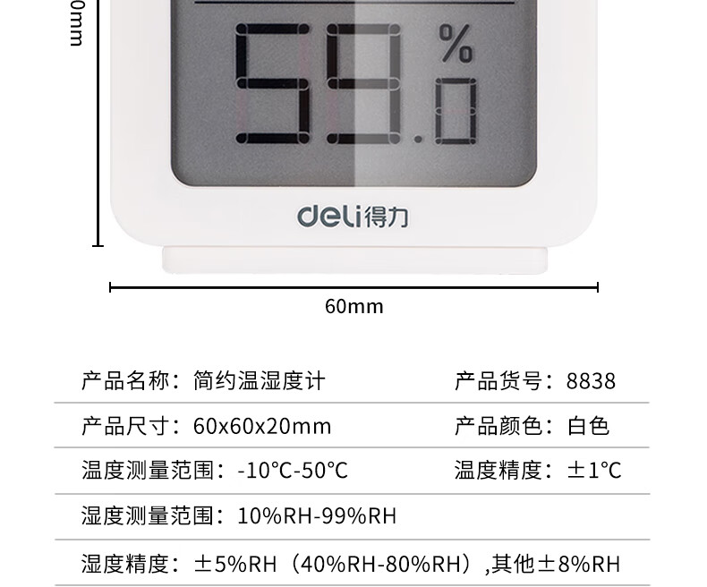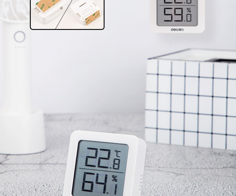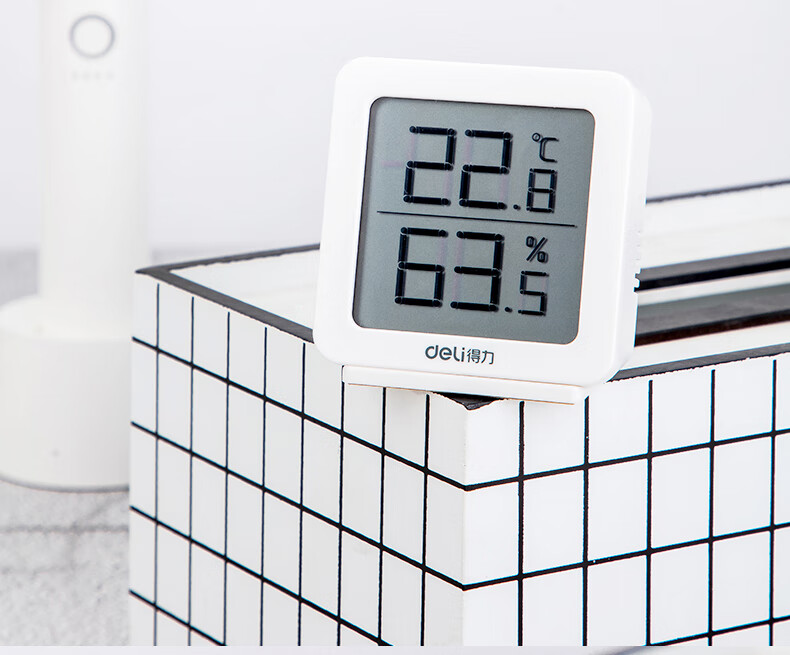 得力(deli)LCD電子室內(nèi)溫濕度計 一秒一測 吸附站立兩用式 白色8838