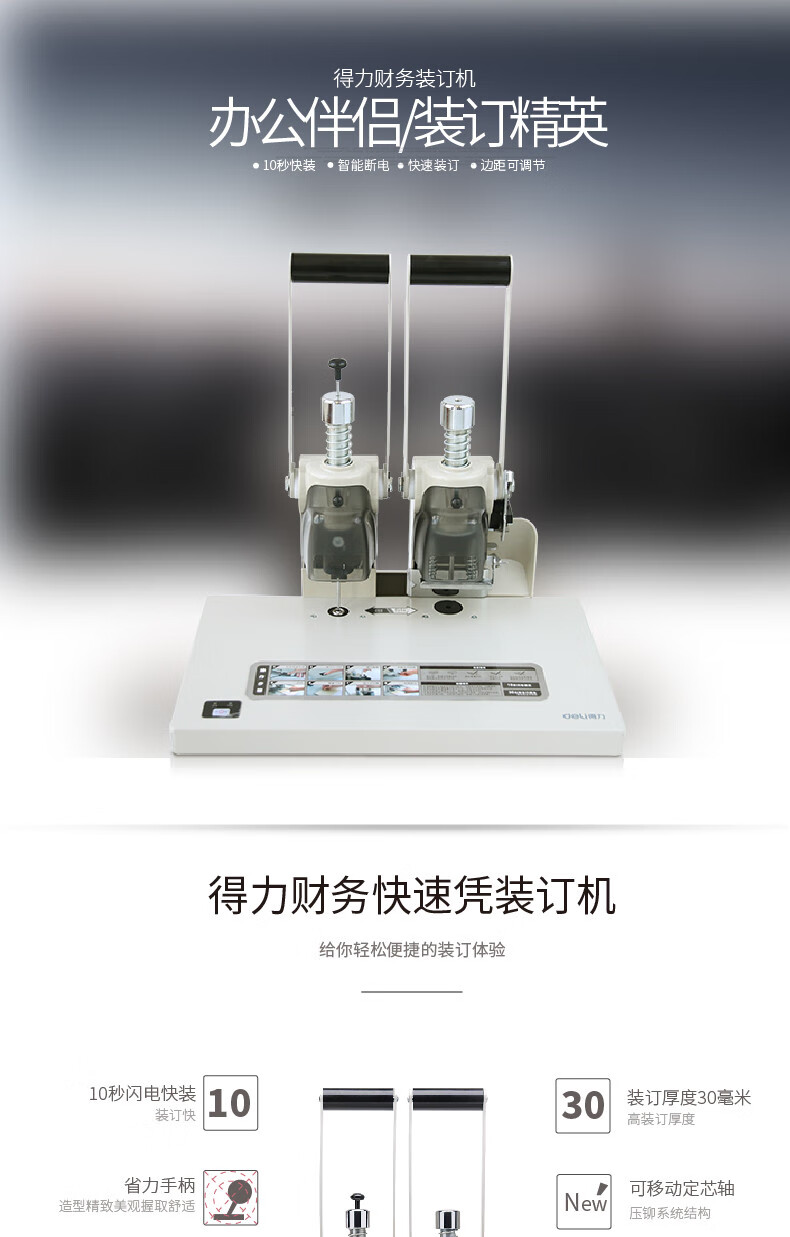 得力/deli 3875 裝訂及打孔類 裝訂機(jī)財(cái)務(wù)憑據(jù)憑證裝訂機(jī)會(huì)計(jì)專用手動(dòng)打孔機(jī)熱熔鉚管膠裝機(jī)辦公用品