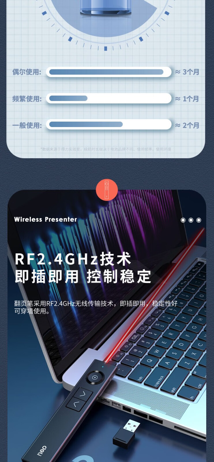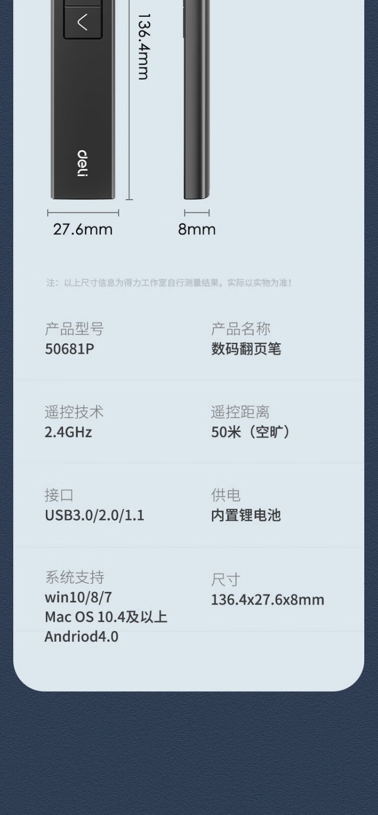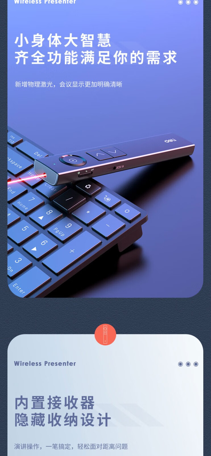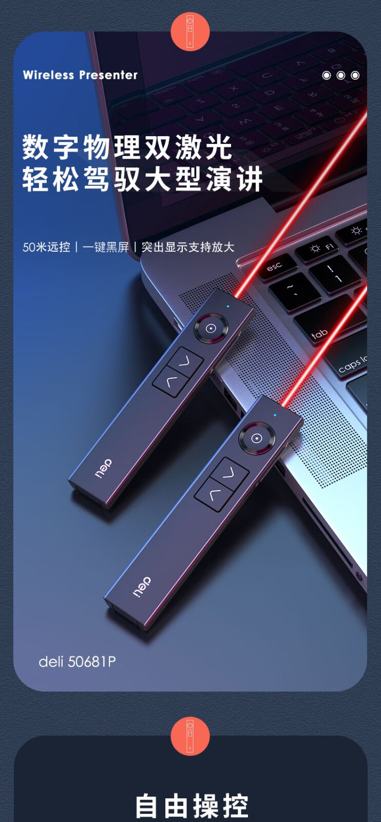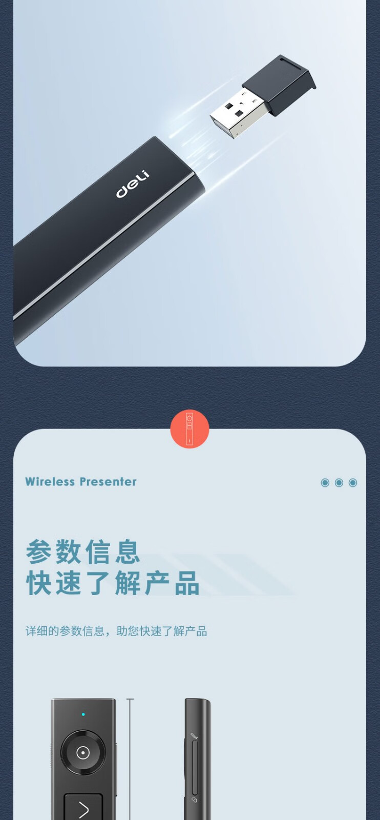 得力/deli 50681P 激光筆 數(shù)字物理雙激光翻頁(yè)筆PPT幻燈片交互平板會(huì)議教學(xué)用