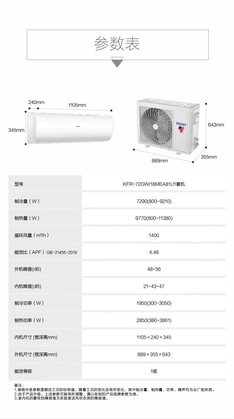 海爾(Haier)KFR-72GW/18MEA81U1 壁掛式空調(diào) 3匹 一級能效 變頻冷暖