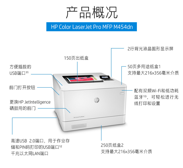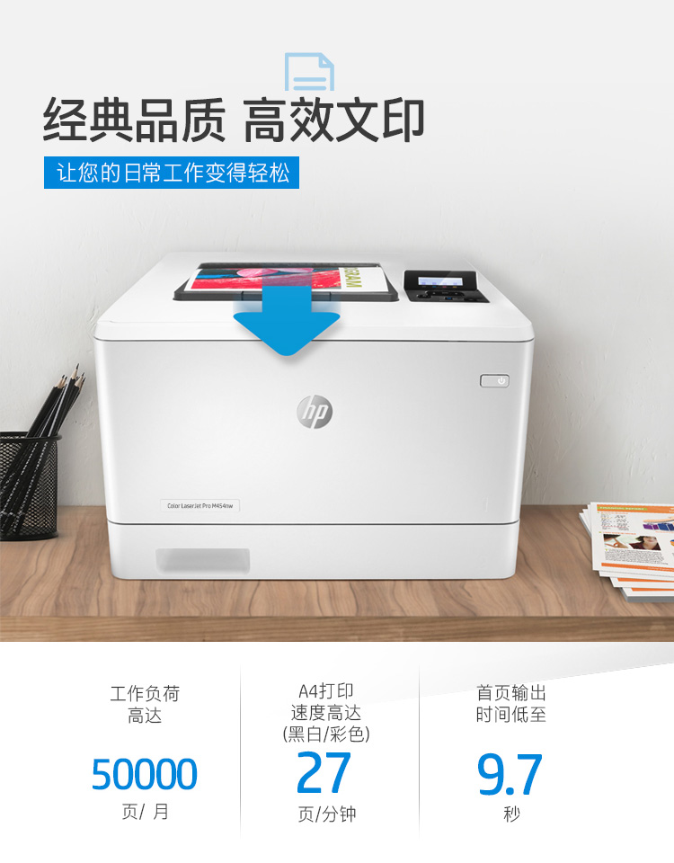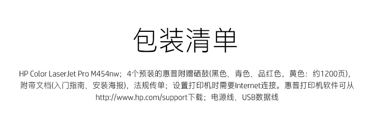 惠普(HP)M454nw A4彩色激光單功能打印機 有線網(wǎng)絡/無線連接(商用)