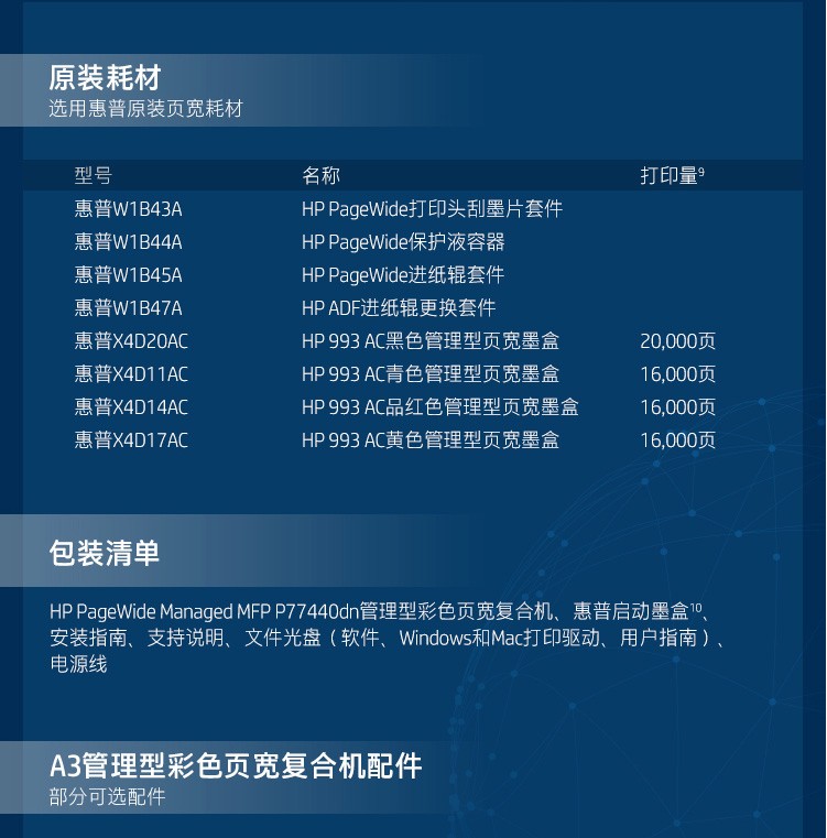 惠普/HP P77440dn A3 彩色打印機 管理型彩色頁寬復(fù)合 標(biāo)配