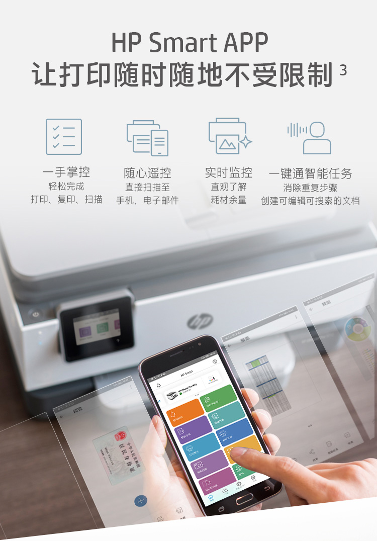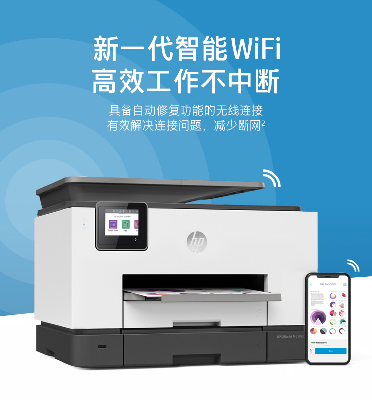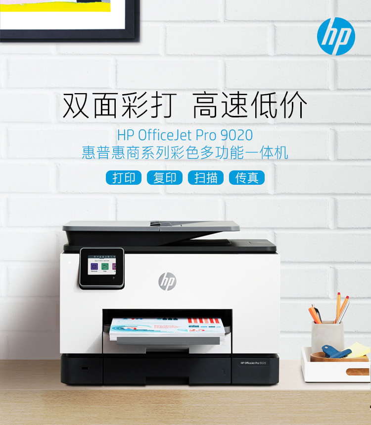 惠普 (HP) OJP 9020商用噴墨彩色無(wú)線多功能一體機(jī)四合一 打印復(fù)印掃描傳真 自動(dòng)雙掃雙打 8720升級(jí)款