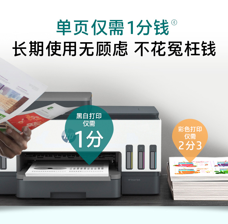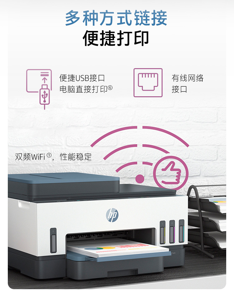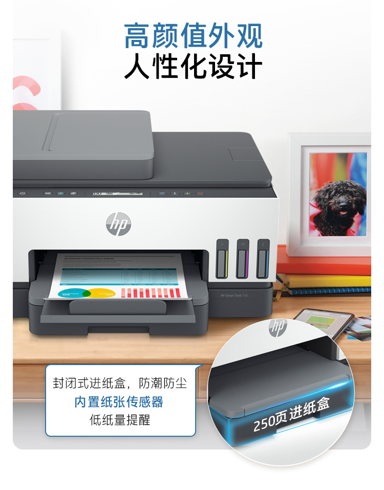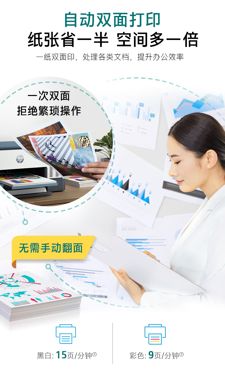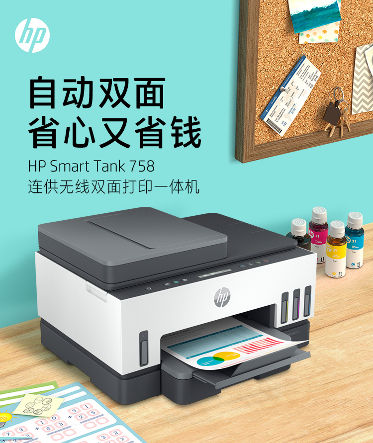 惠普(HP)758 連供無線自動雙面打印機 三合一彩色打印復(fù)印掃描 家庭打印商用辦公內(nèi)置墨倉單頁成本1分錢