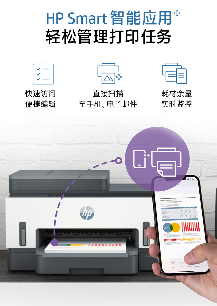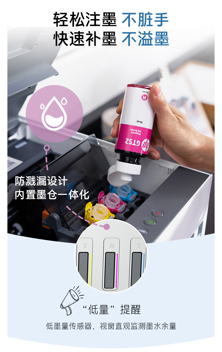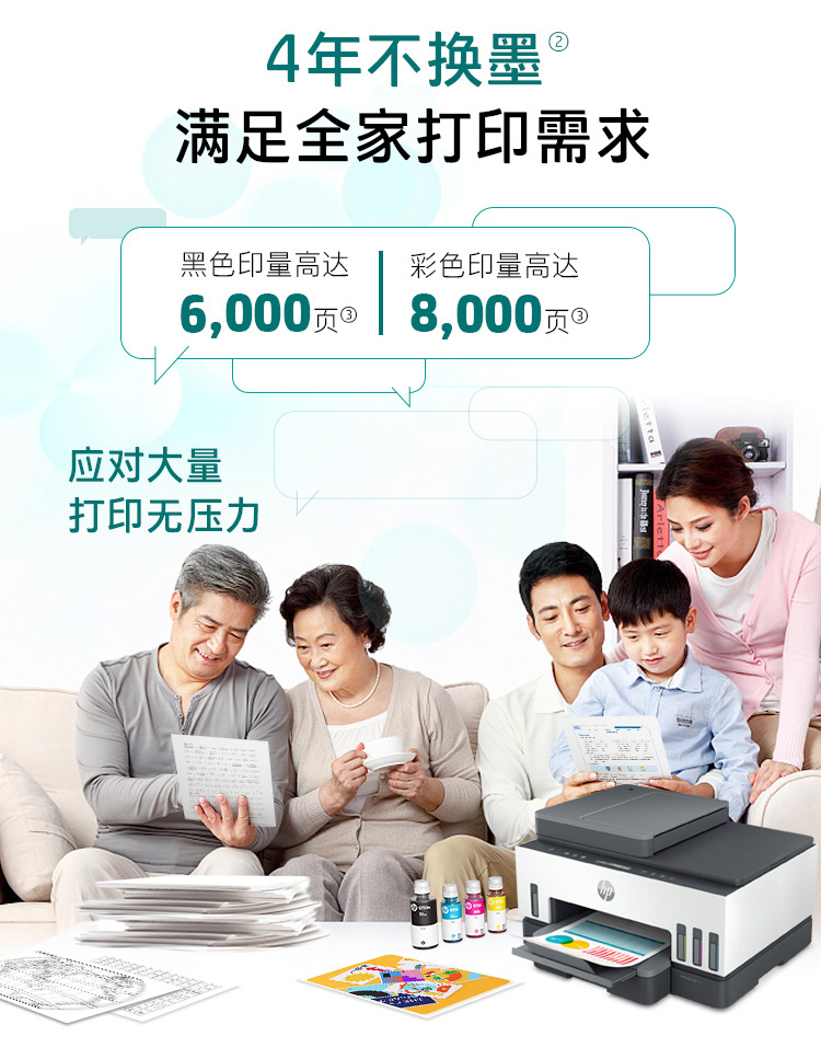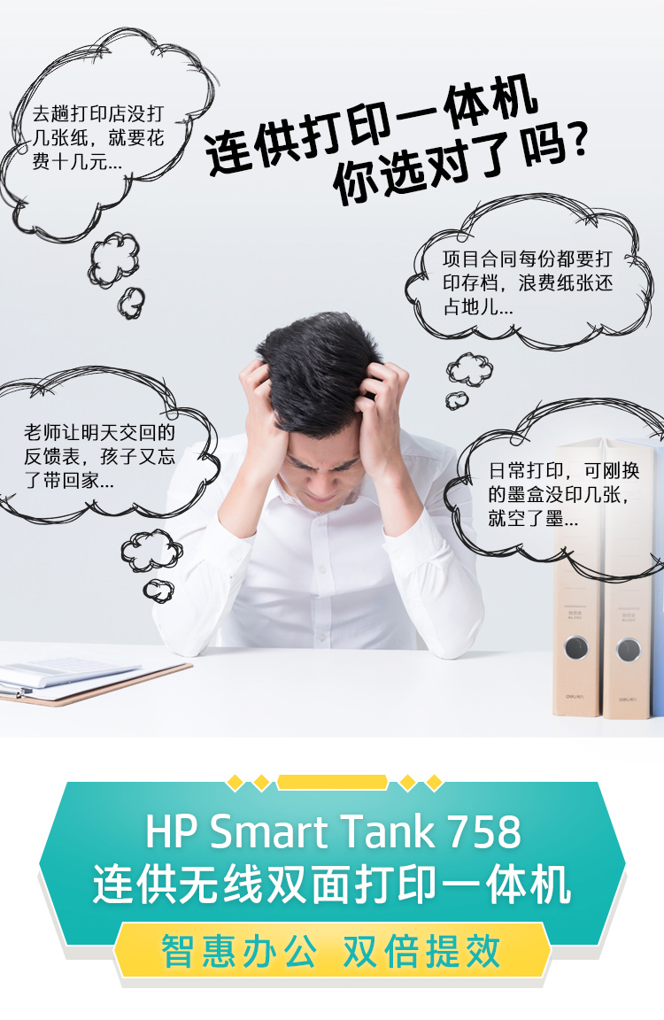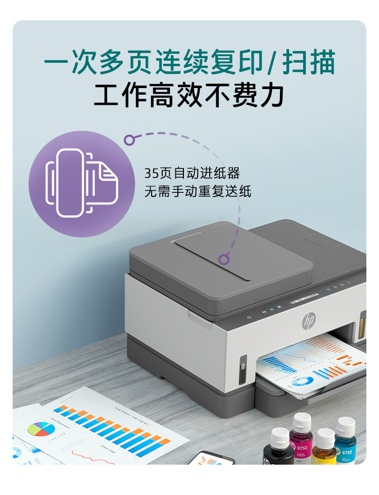 惠普(HP)758 連供無線自動雙面打印機 三合一彩色打印復(fù)印掃描 家庭打印商用辦公內(nèi)置墨倉單頁成本1分錢