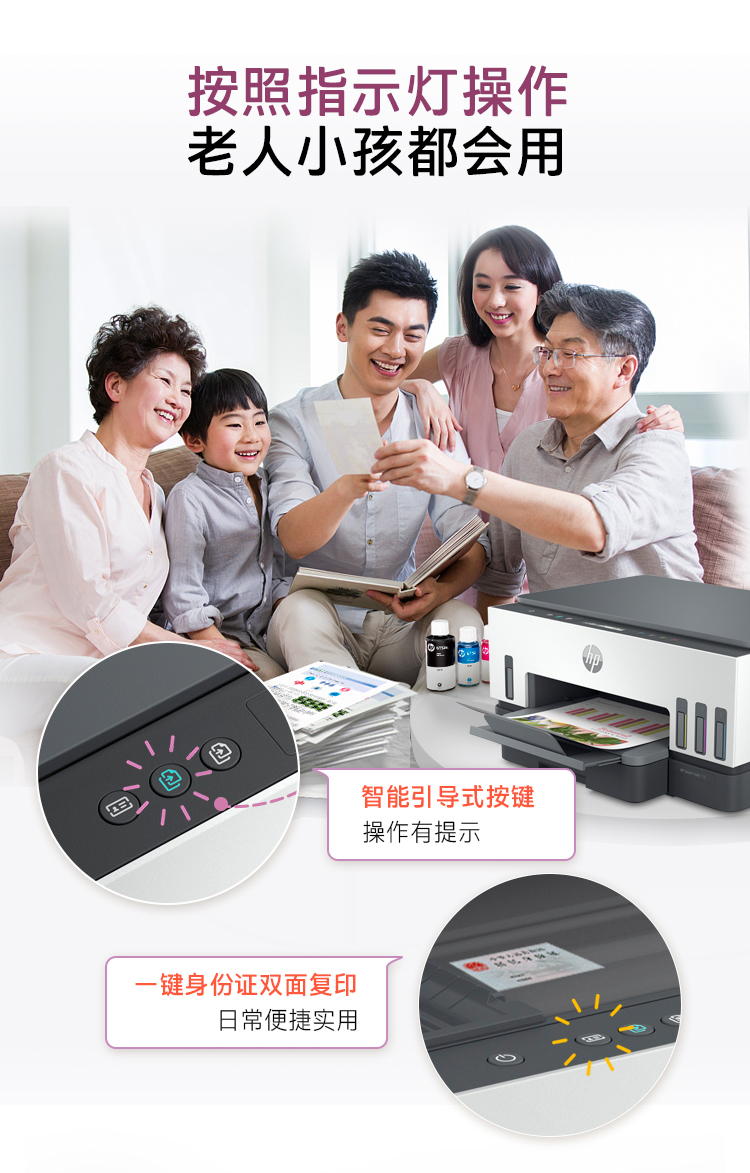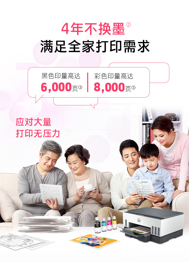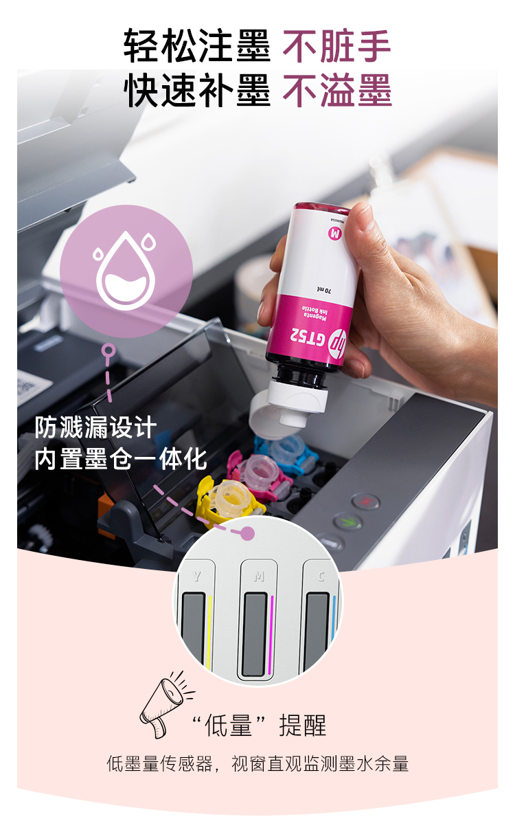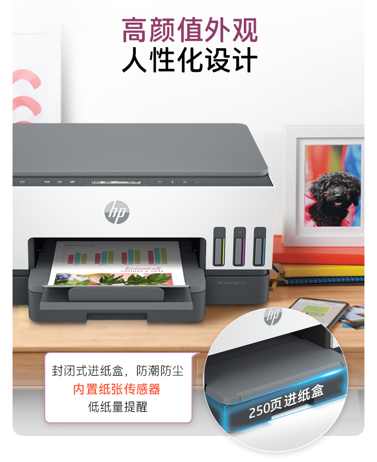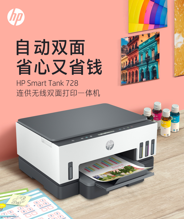 惠普(HP)728 連供無線打印一體機 自動雙面三合一彩色打印機家用 打印復印掃描商用辦公單頁成本1分錢