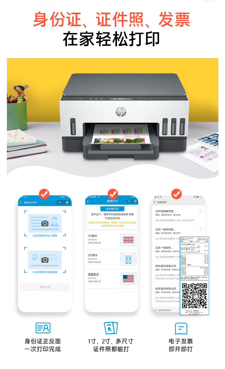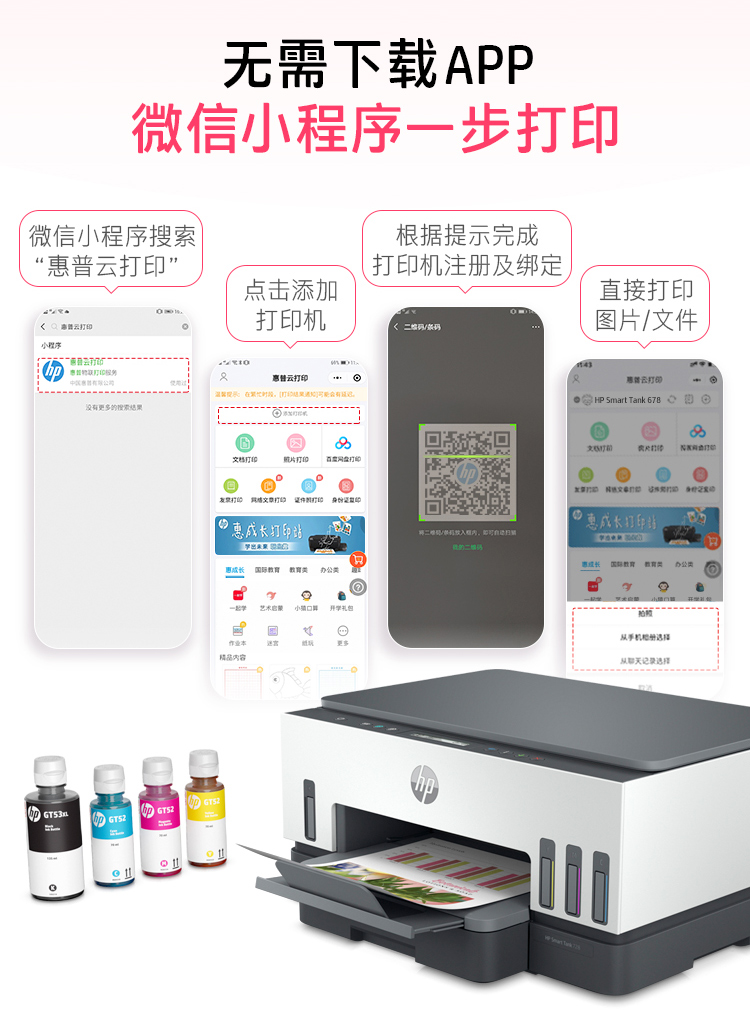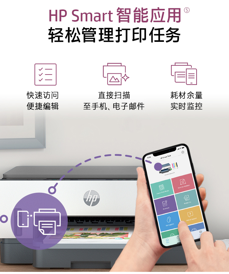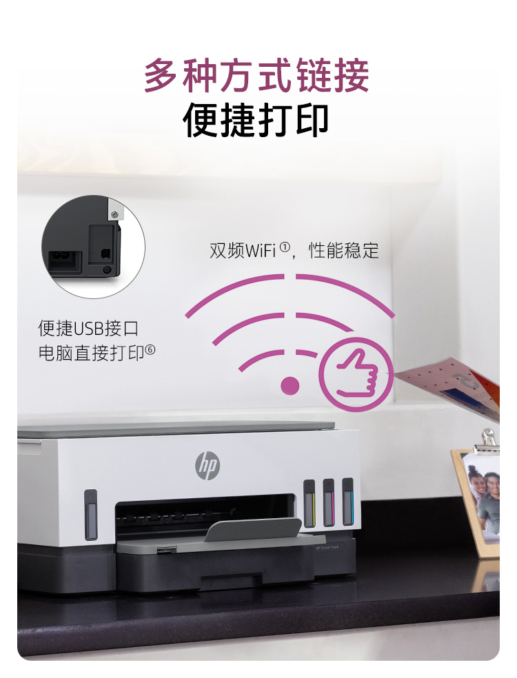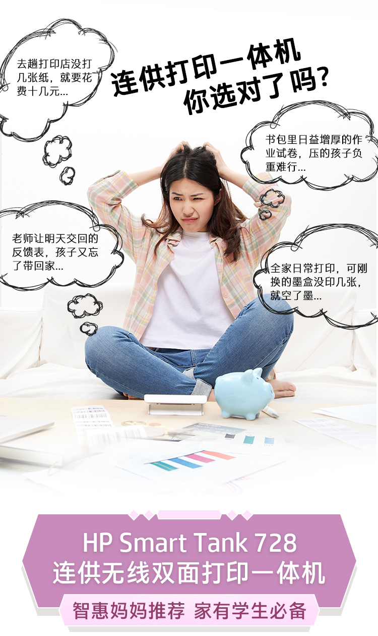 惠普(HP)728 連供無線打印一體機 自動雙面三合一彩色打印機家用 打印復印掃描商用辦公單頁成本1分錢