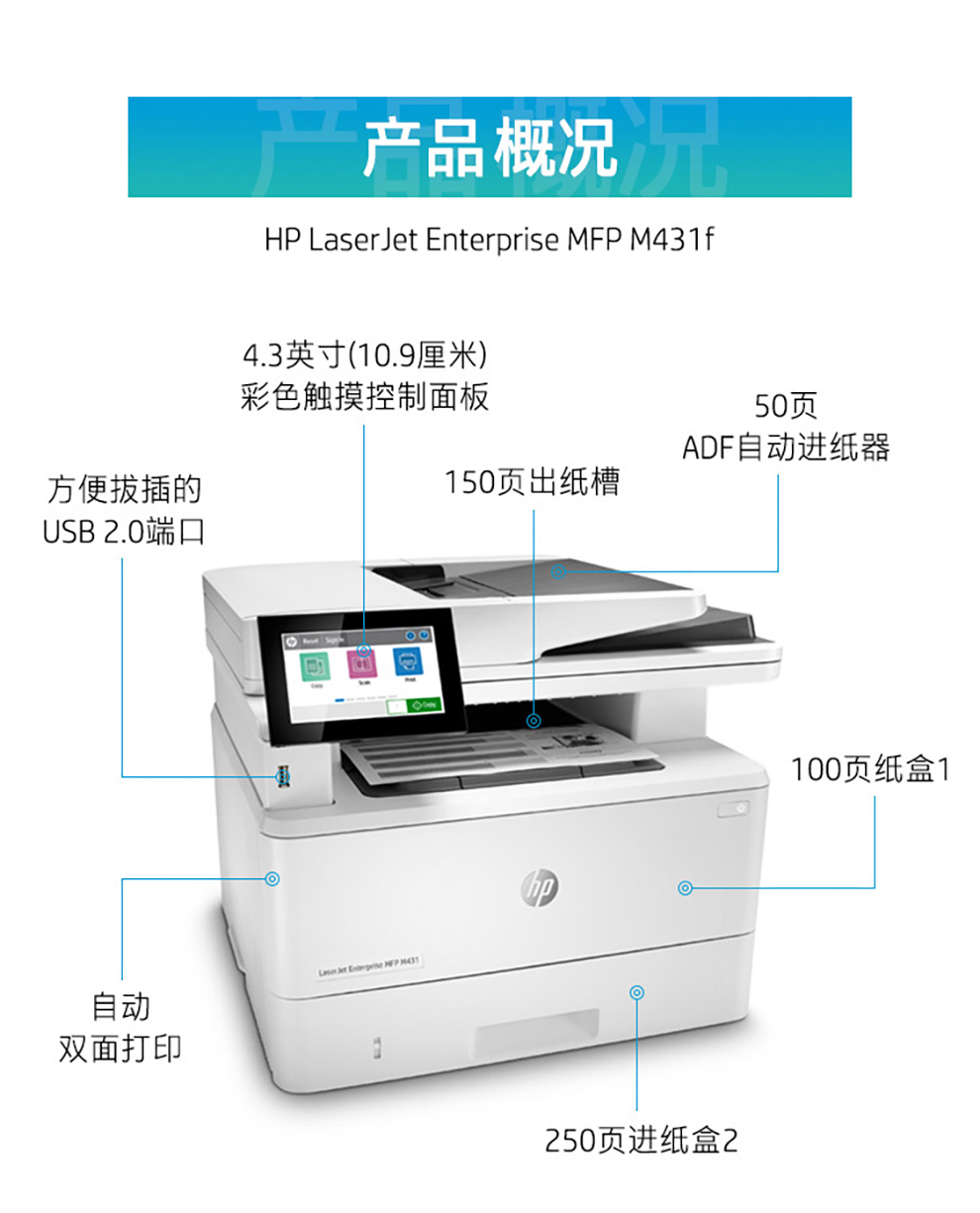 惠普/HP M431f A4 黑白打印機(jī) 多功能一體機(jī) 自動(dòng)雙面 打印 復(fù)印 掃描 傳真有線連接