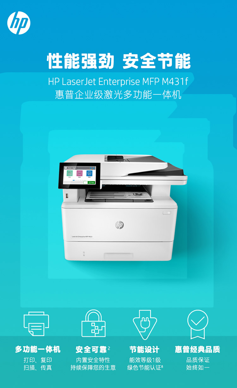 惠普(HP) M431f A4黑白激光多功能一體機(jī) 自動(dòng)雙面 打印 復(fù)印 掃描 傳真有線連接(原廠1年上門(mén))