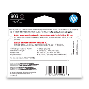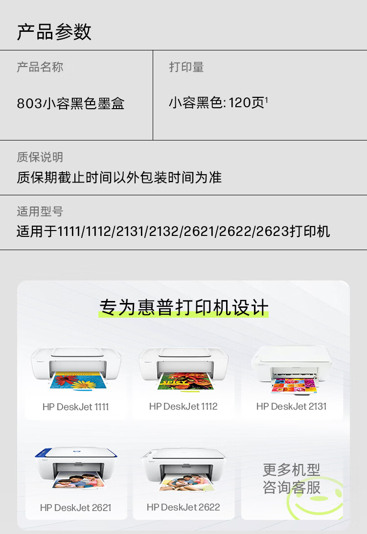 惠普(HP)803原裝黑色特別版墨盒 適用hp deskjet 1111/1112/2131/2132/2621/2622打印機