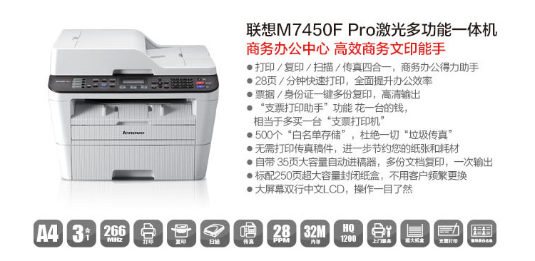 聯(lián)想(Lenovo)M7450FPro黑白激光多功能一體機(jī)(打印復(fù)印掃描傳真