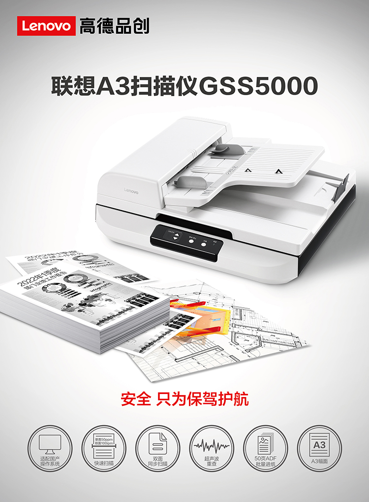聯(lián)想(Lenovo)GSS5000 A3幅面掃描儀 支持雙面同步掃描 支持國產(chǎn)系統(tǒng)及Windows系統(tǒng)(國產(chǎn)化)
