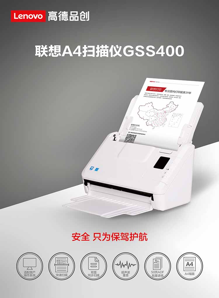 聯(lián)想(Lenovo)GSS400掃描儀A4幅面饋紙式(40ppm/80ipm/自動雙面掃描)(國產(chǎn)化)