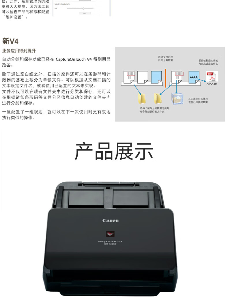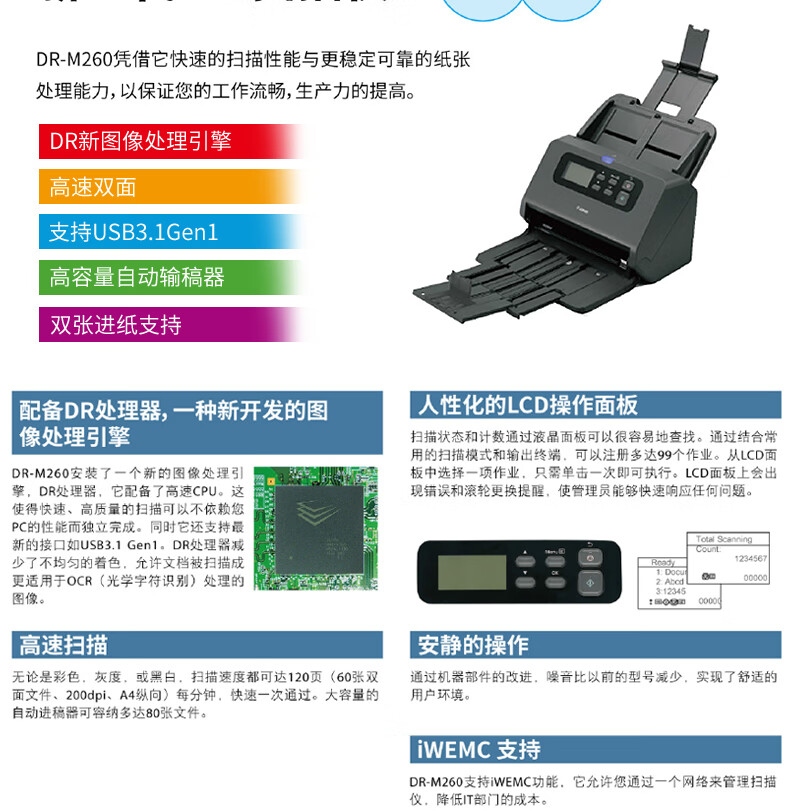 佳能(Canon)DR-M260 A4高速高清彩色掃描儀 快速連續(xù)自動(dòng)雙面饋紙式掃描儀 辦公文檔卡片發(fā)票掃描儀