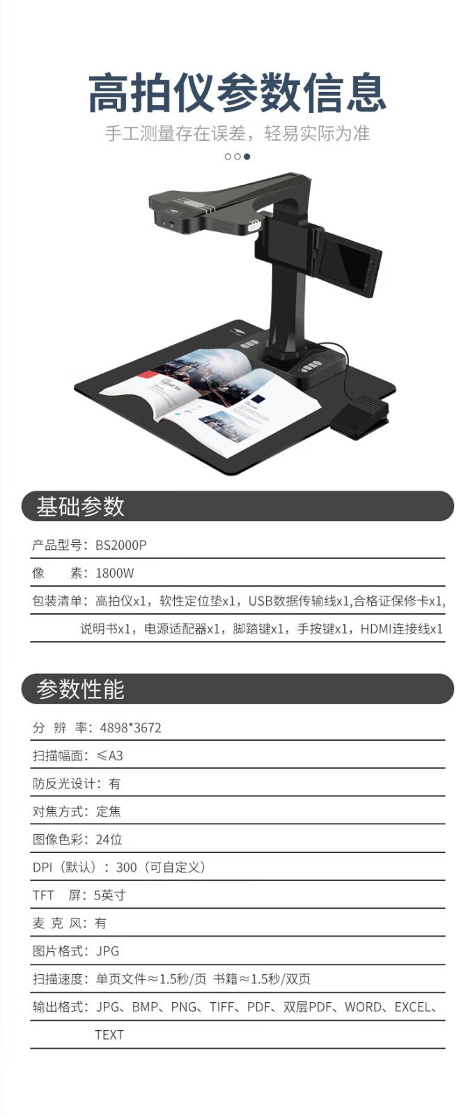 良田/eloam BS2000P 高拍儀 高拍儀視頻展臺(tái)高速掃描儀 1800萬高清 BS2000P(A3帶預(yù)覽)