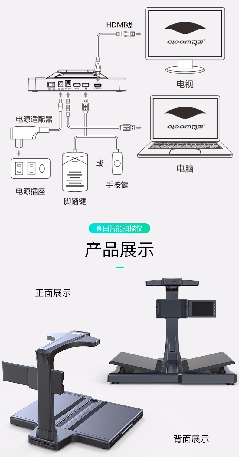 良田(eloam)高拍儀掃描儀2200萬(wàn)像素高清定焦語(yǔ)音控制高速掃描儀辦公家用文件書(shū)籍 BS3000P