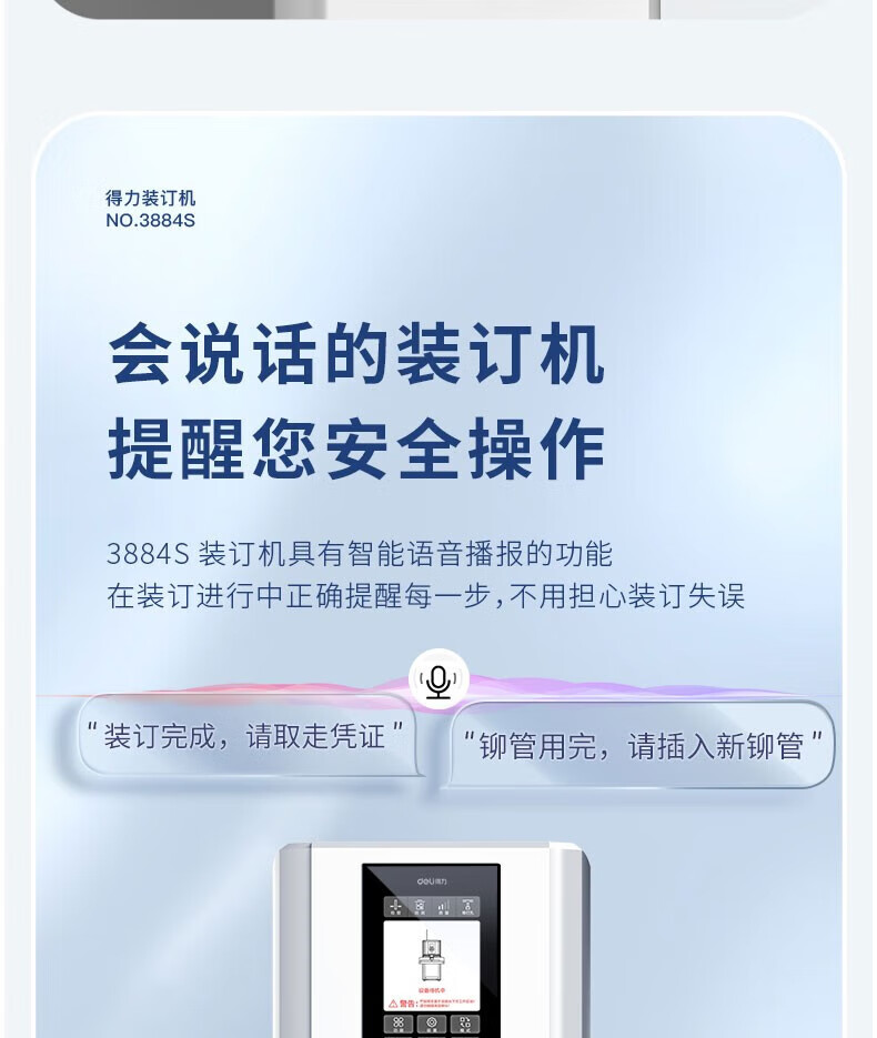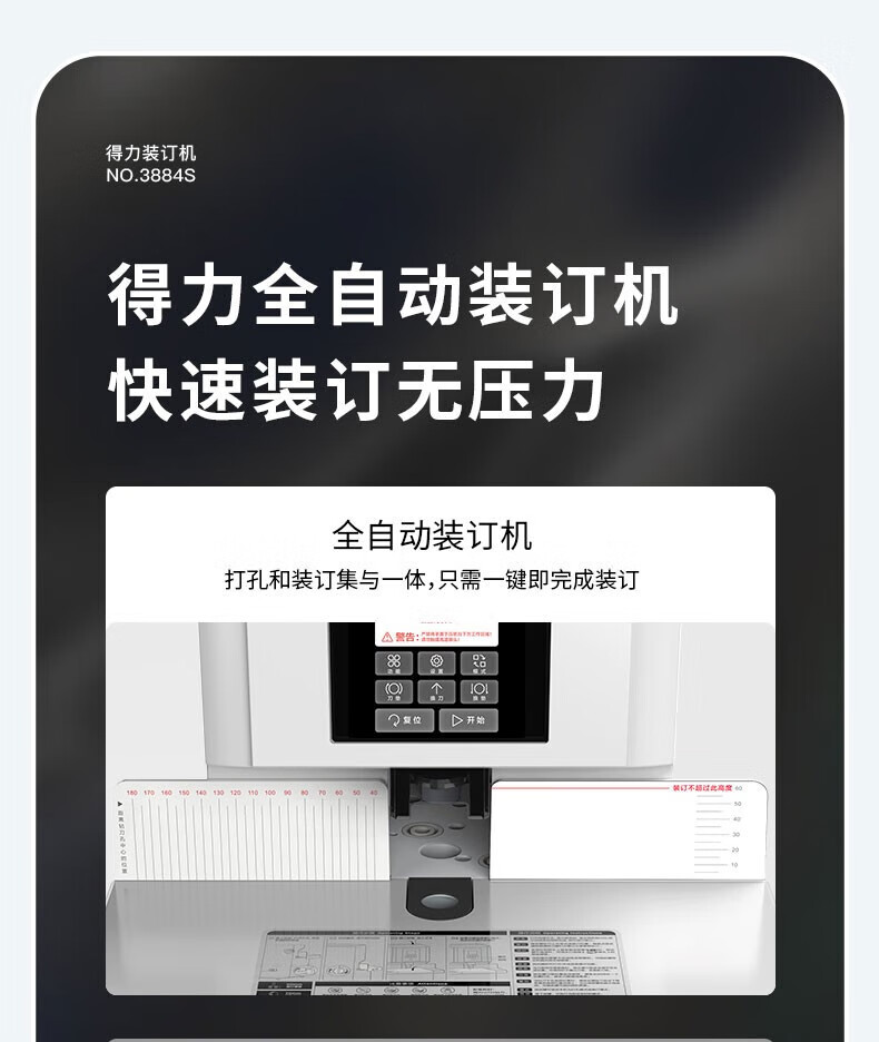 得力/deli 3884S 裝訂及打孔類 60mm全自動(dòng)財(cái)務(wù)憑證裝訂機(jī) 會(huì)計(jì)文件熱熔鉚膠管打孔機(jī) 觸控屏幕一鍵操作 600頁(yè) 全自動(dòng)裝訂