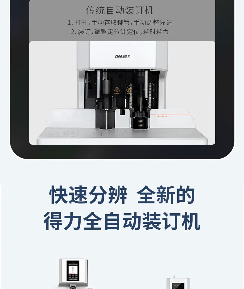 得力(deli)60mm全自動(dòng)財(cái)務(wù)憑證裝訂機(jī) 會(huì)計(jì)文件熱熔鉚膠管打孔機(jī) 觸控屏幕一鍵操作 600頁(yè) 全自動(dòng)裝訂 3884S