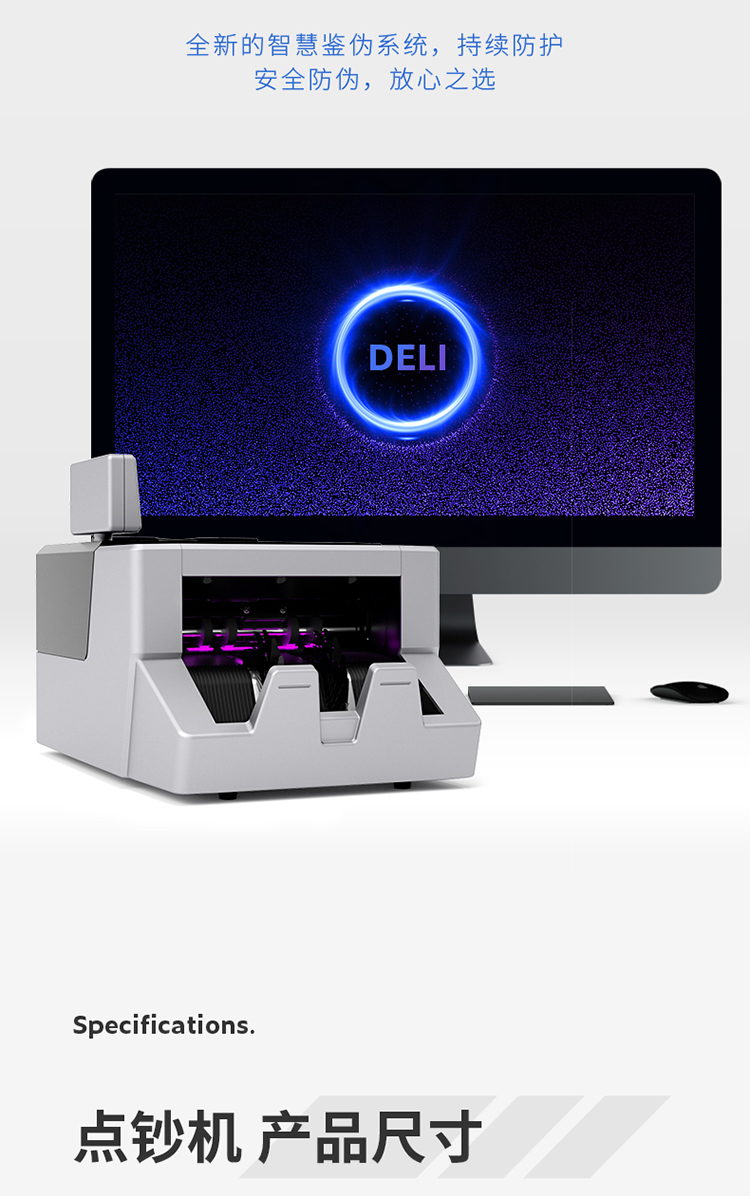 得力(deli)A類銀行專用多功能智能點鈔機 驗鈔機 10重鑒偽人民幣驗鈔機 2126
