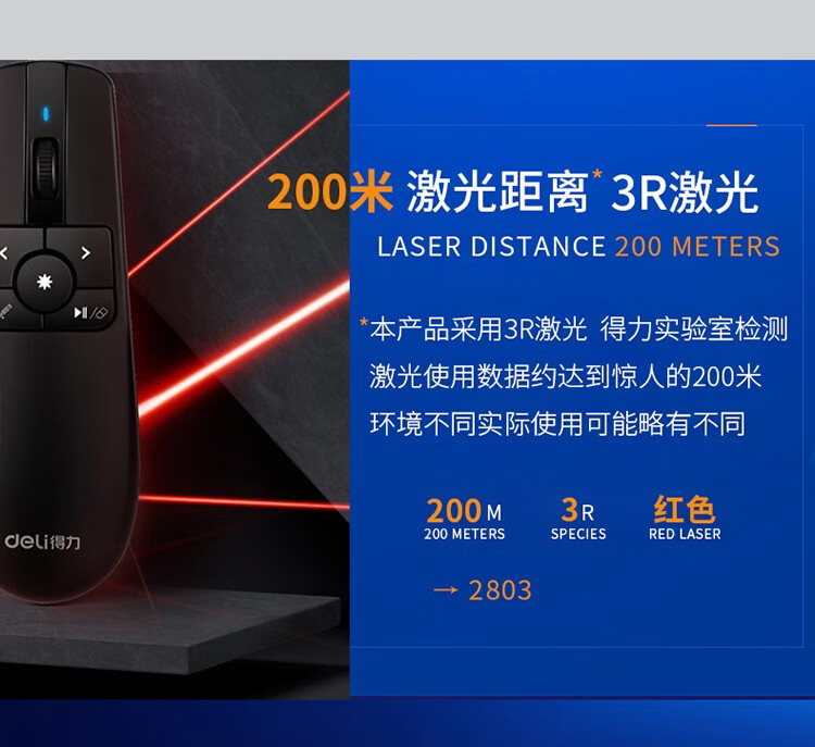 得力/deli 2803 激光筆 空中鼠標飛鼠 可充電液晶屏激光筆 教鞭 PPT無線演講演示器翻頁器 幻燈片遙控器翻 紅光