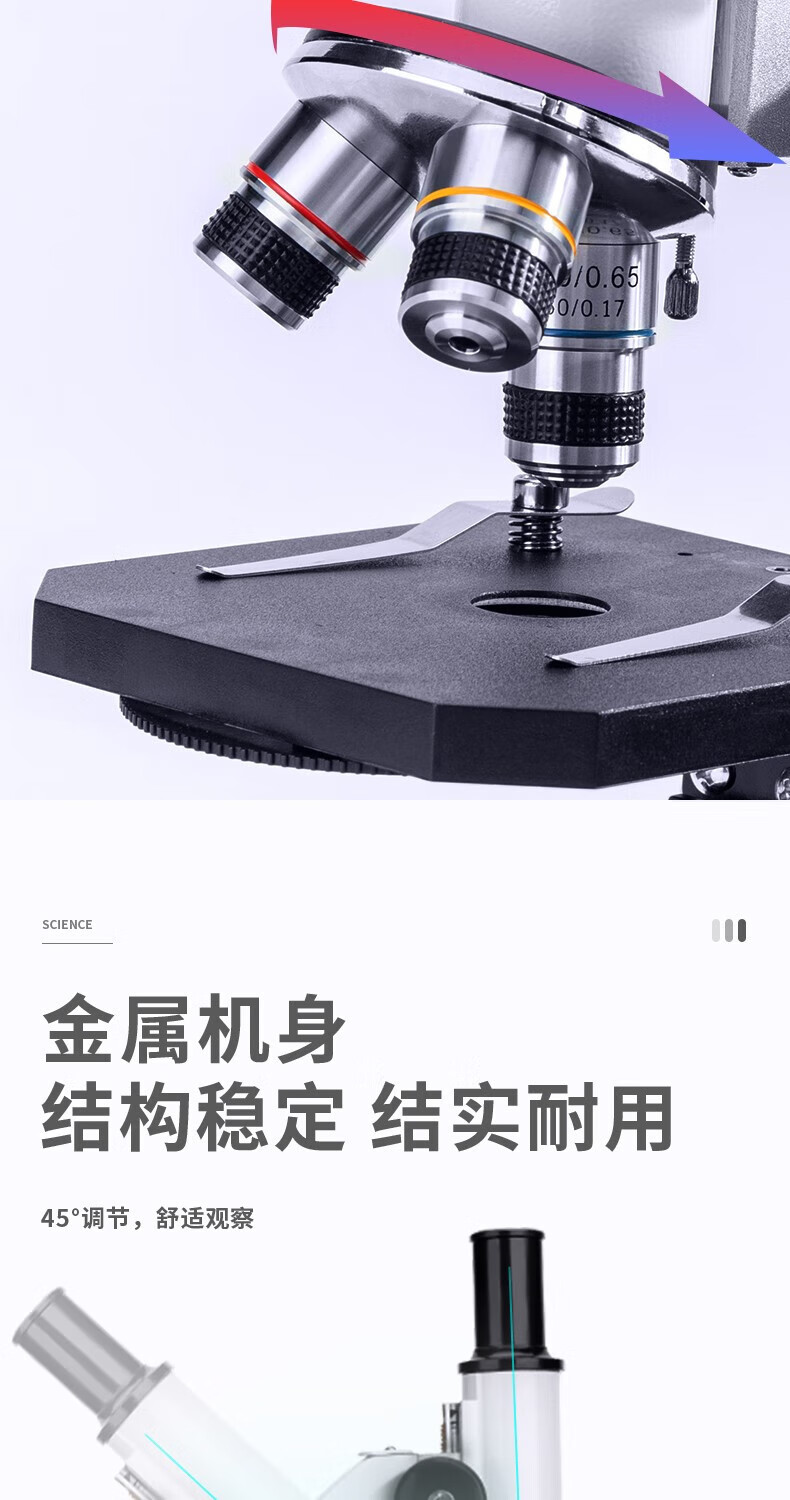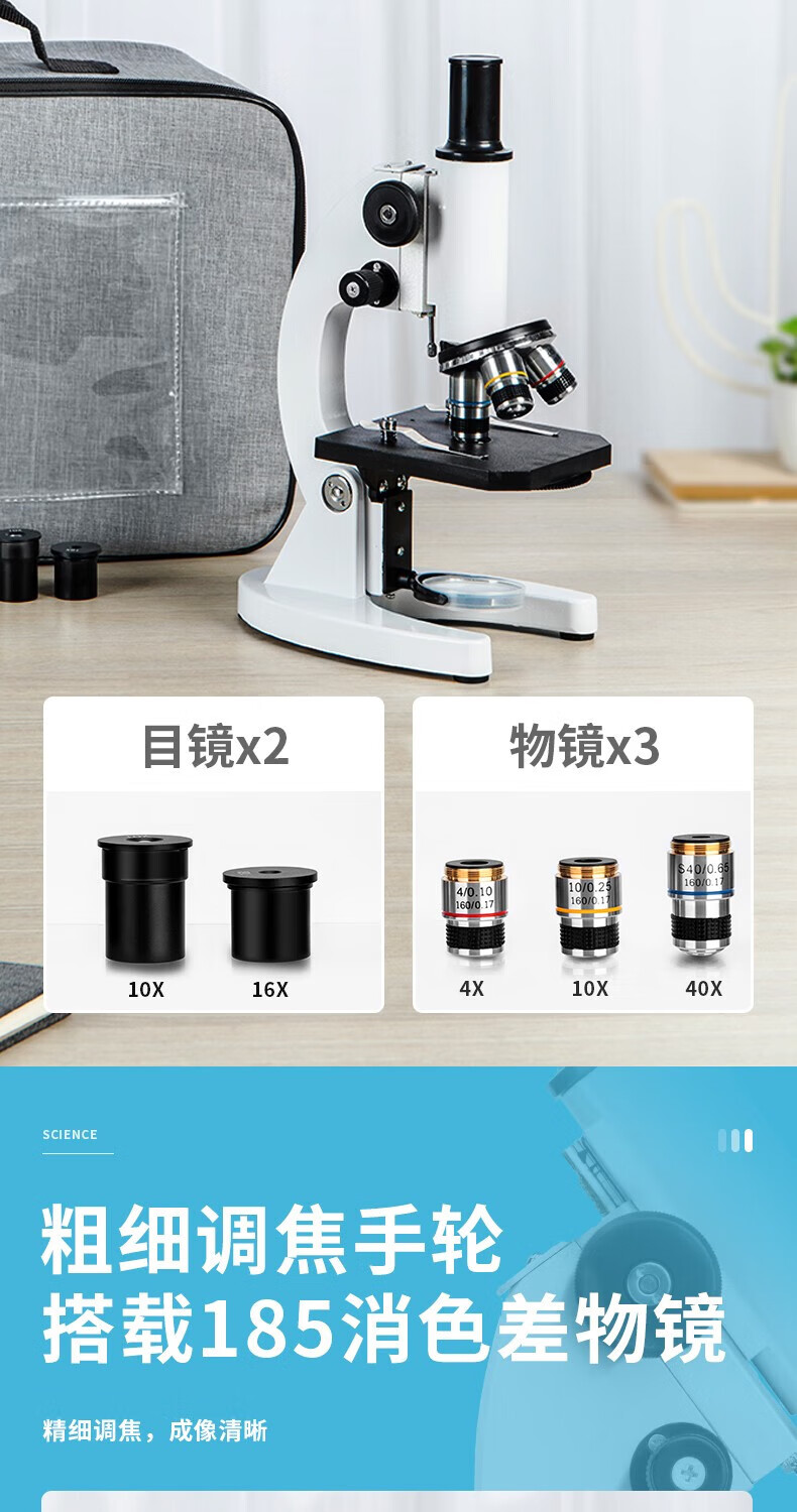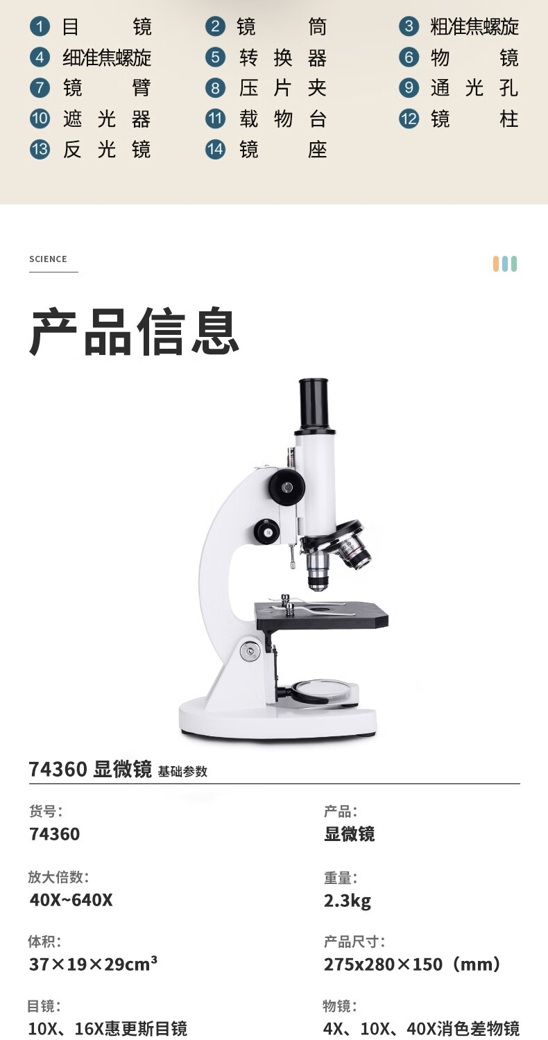 得力(deli)74360單目生物顯微鏡640倍專業(yè)高清小學(xué)初中生中考教學(xué)兒童生日禮物 銀色HY
