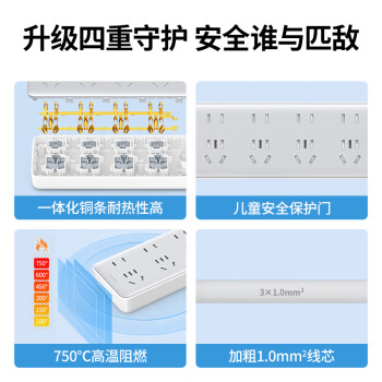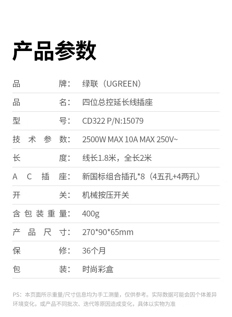 綠聯(lián)(UGREEN)CD325 插座 新國標(biāo)8位總控 插線板 線長1.8米