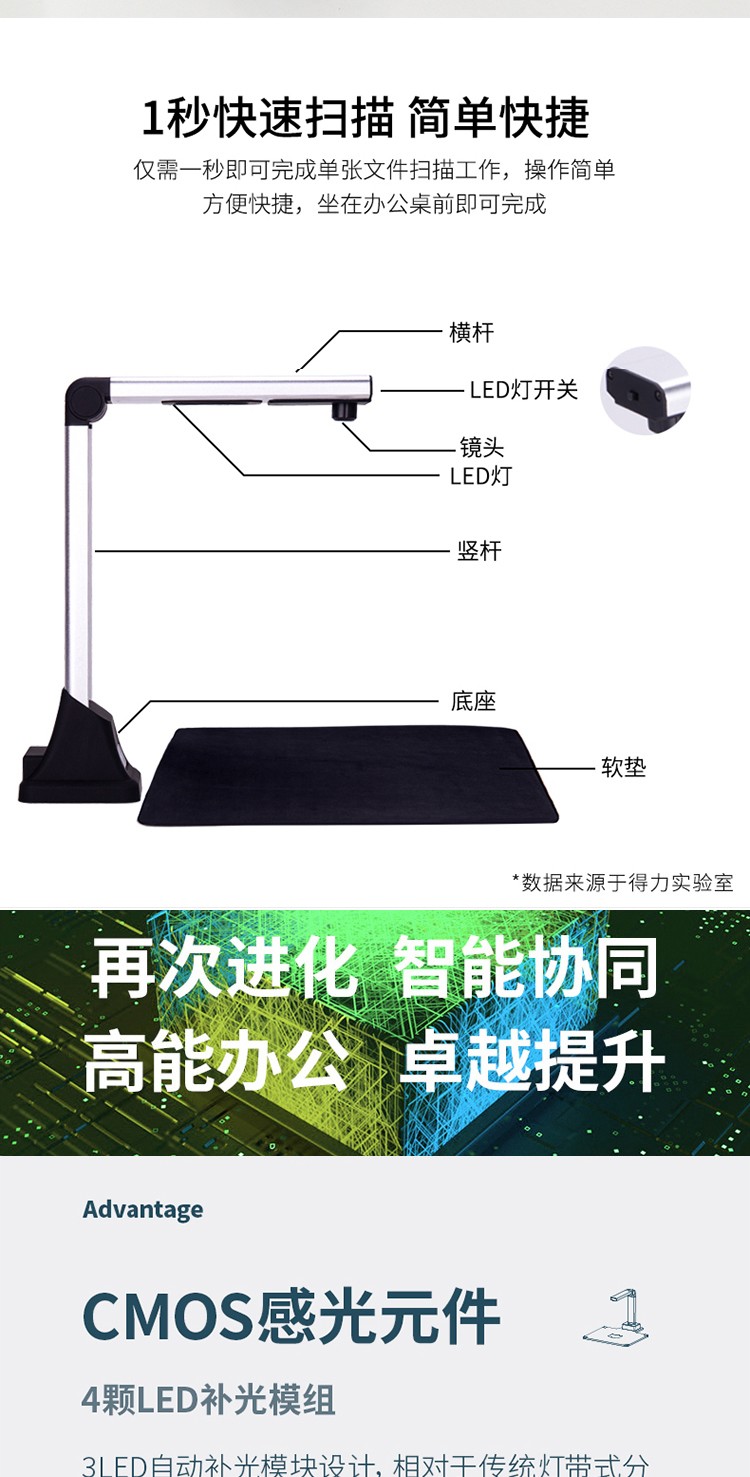 得力/deli 15157 高拍儀 A4/A3幅面高清高速掃描儀帶身份證識別文件試卷檔案高速掃描儀圖文轉(zhuǎn)換 1500萬像素自動對焦高清投影 A4幅面15157