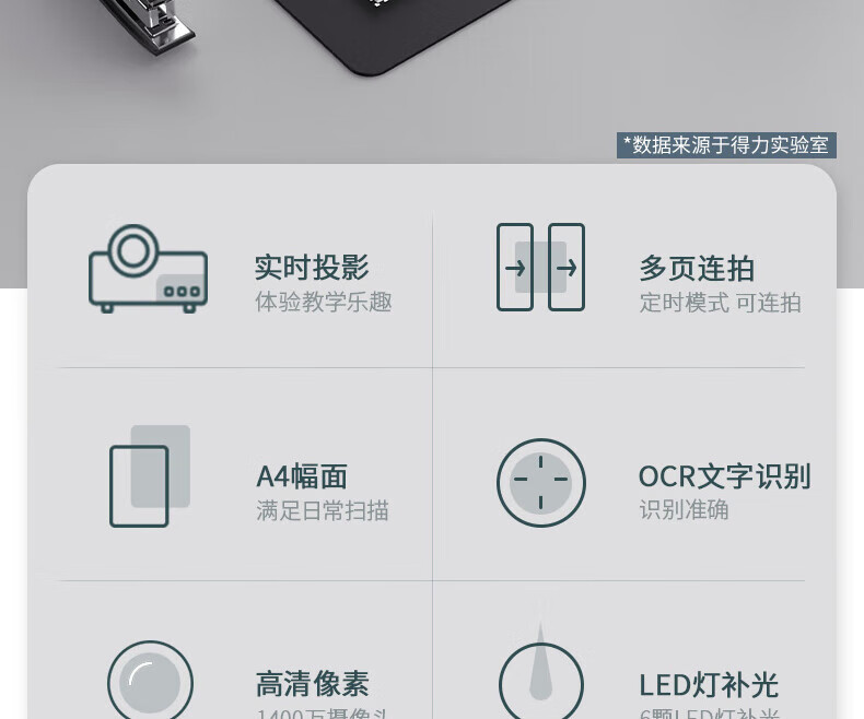 得力高拍儀千萬(wàn)高清像素A4幅面軟底文檔證件掃描連續(xù)掃描自動(dòng)糾偏 1800萬(wàn)-A4硬底-OCR識(shí)別