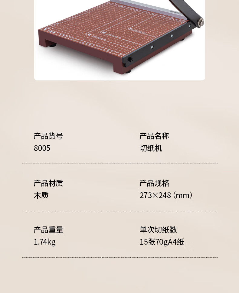 得力(deli) 8005 木質(zhì)切紙機/切紙刀/裁紙刀/裁紙機 250mm*250mm
