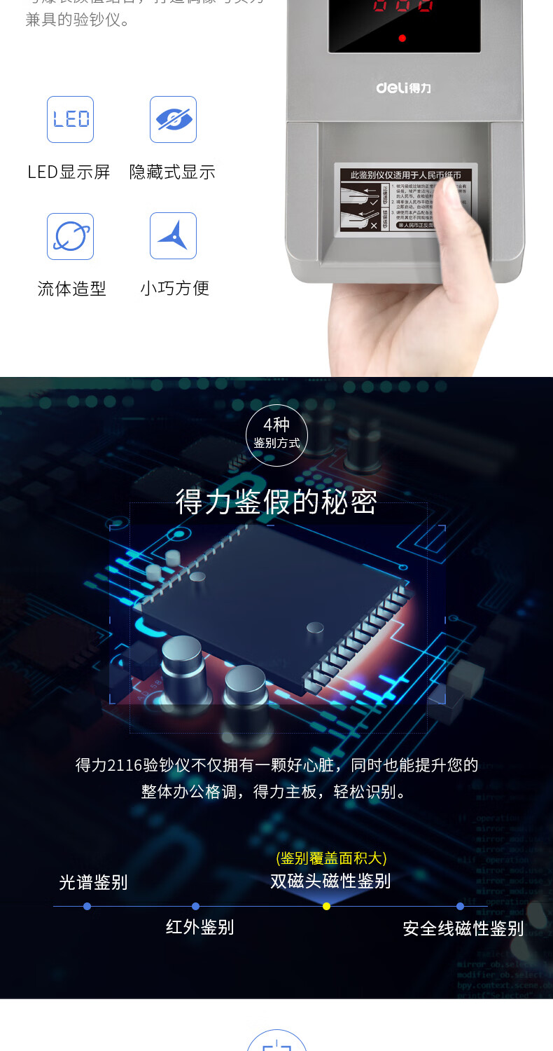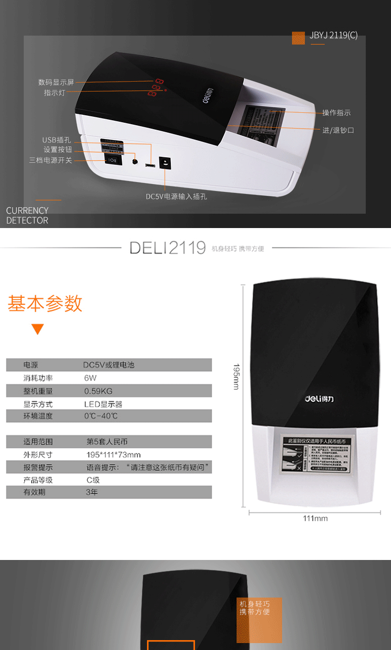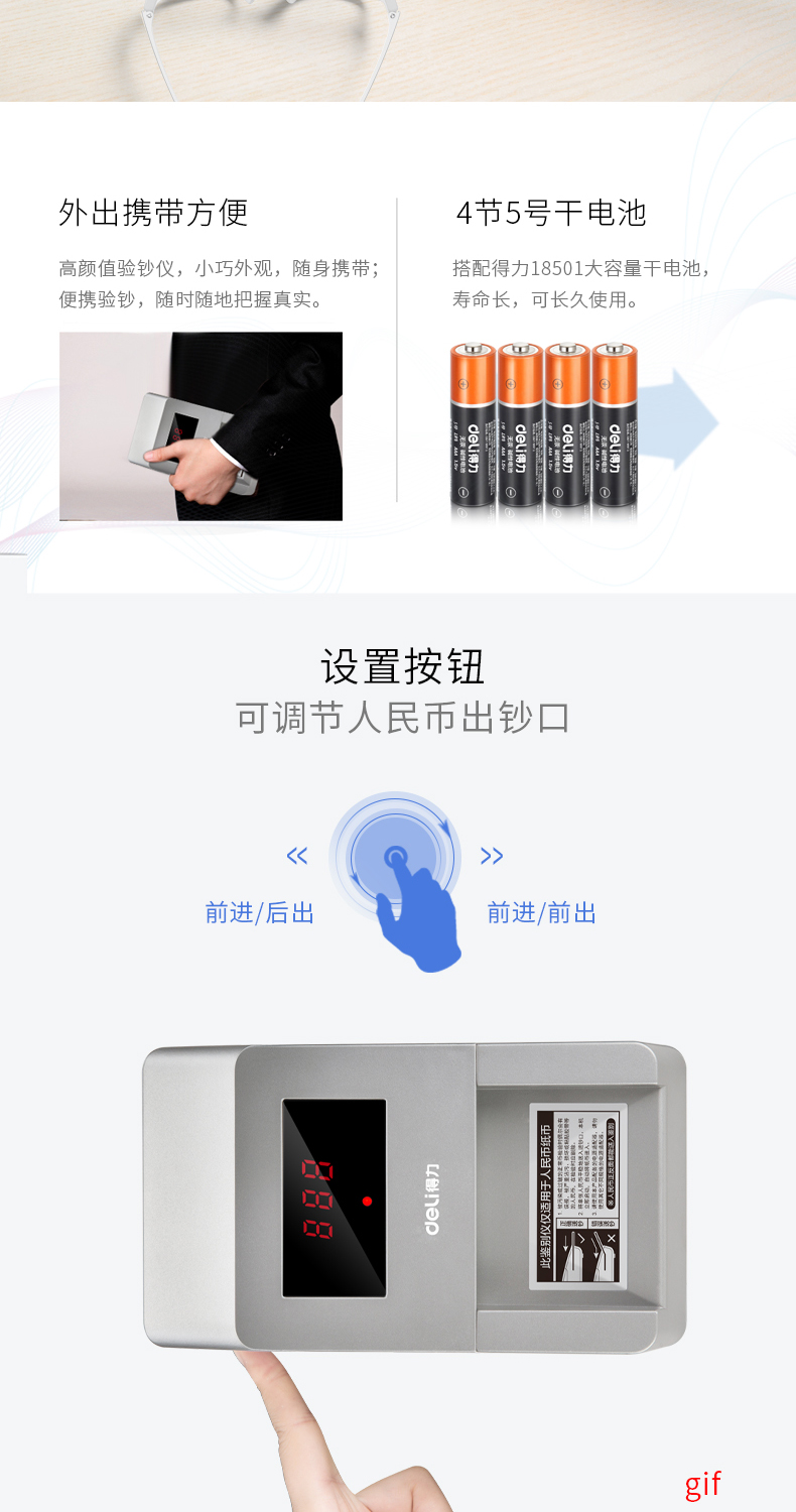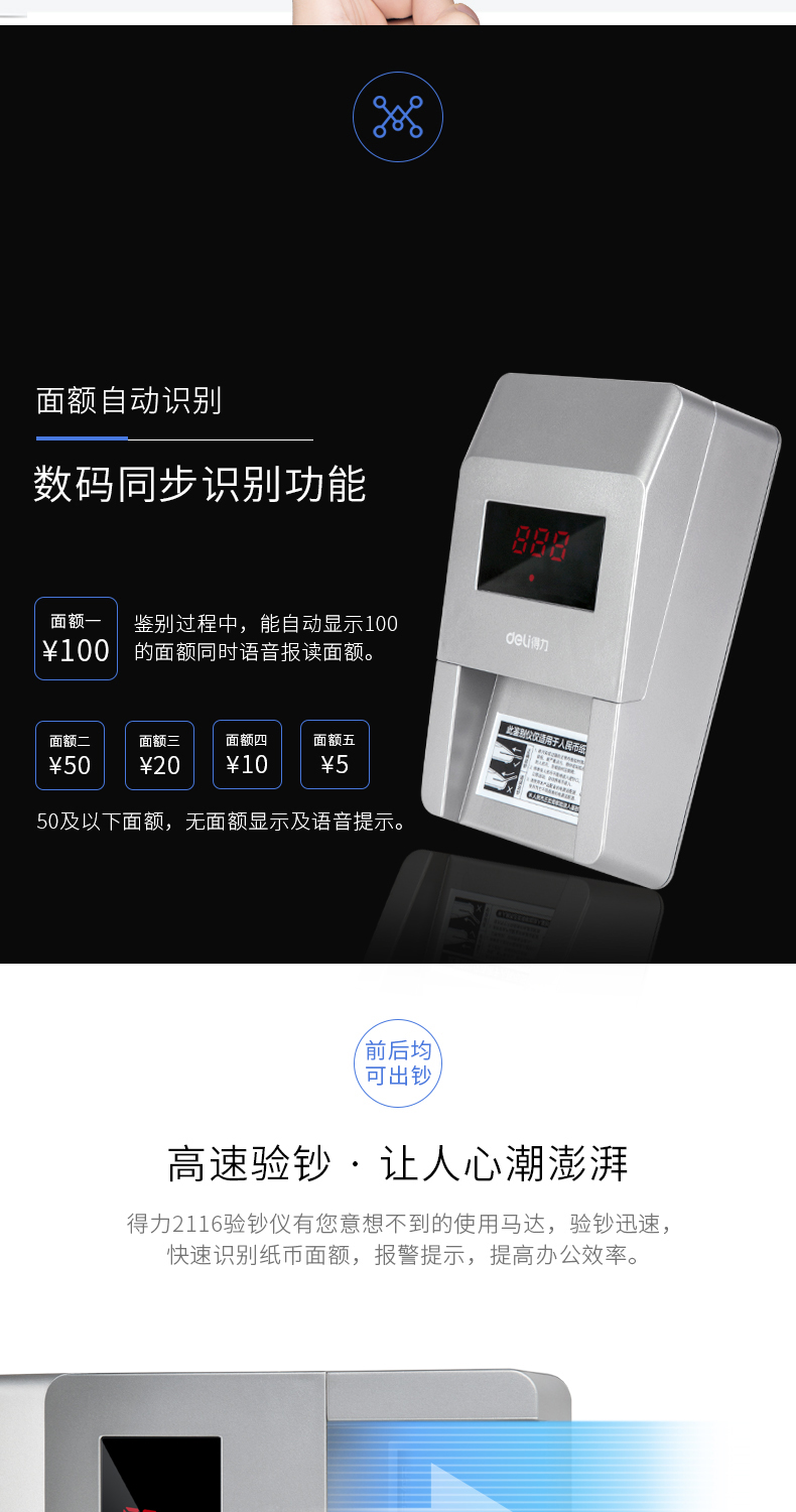 得力/deli 2116 點(diǎn)鈔機(jī) 小型點(diǎn)驗(yàn)鈔機(jī)語音便攜式家用精準(zhǔn)驗(yàn)鈔儀 電池+外接電源 小功率