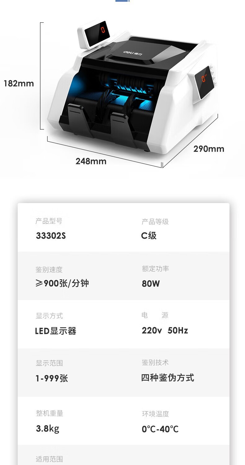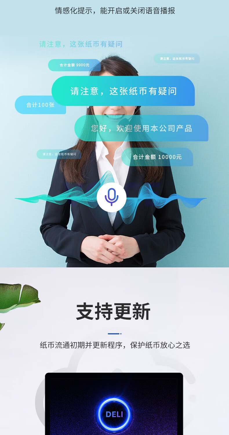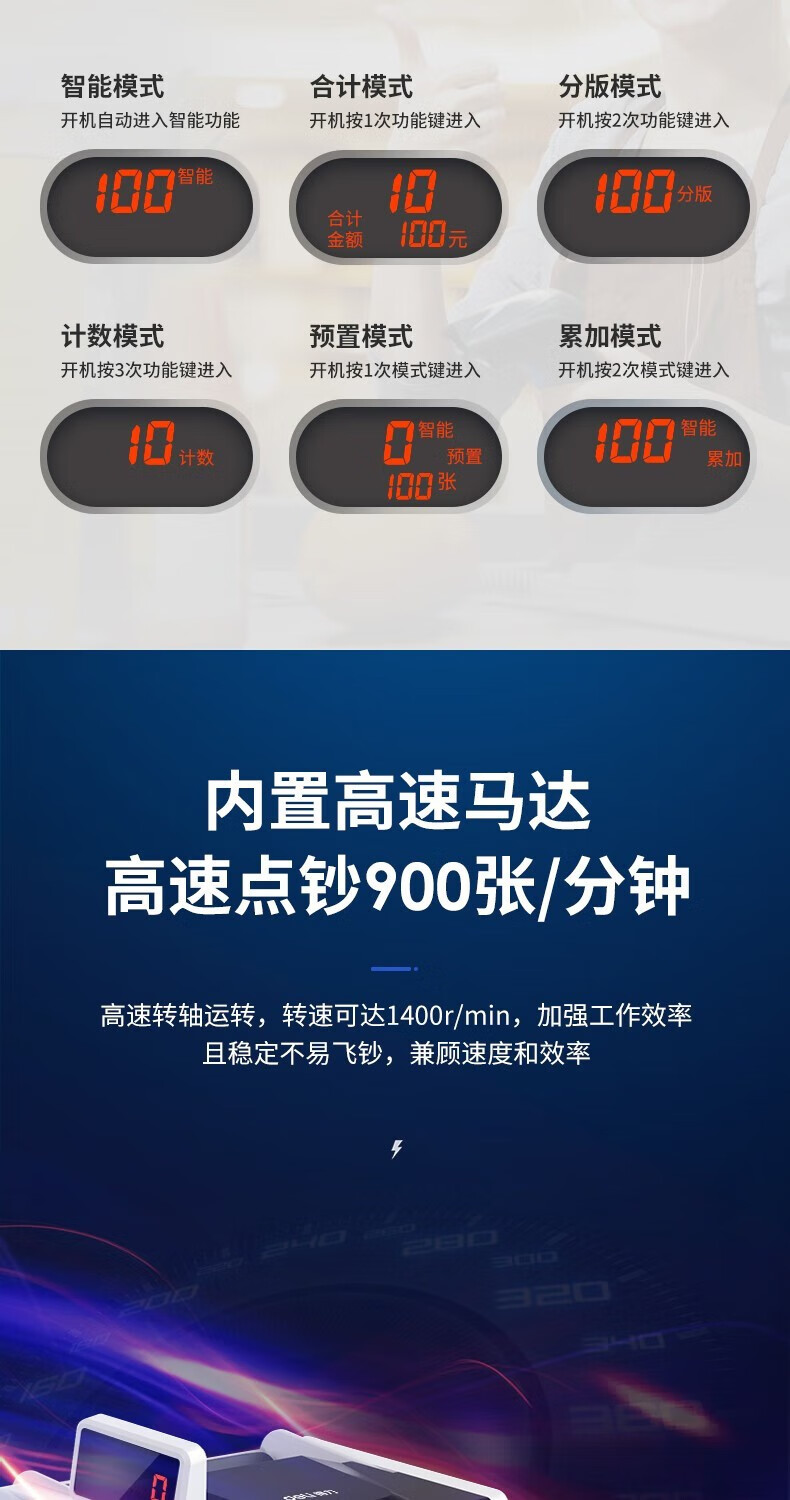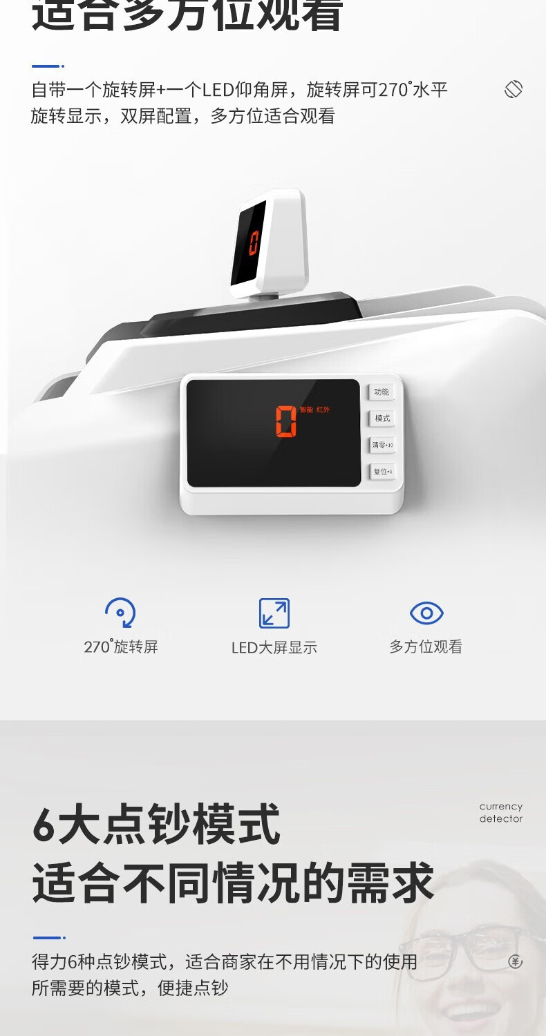 得力(deli)小型家用C類點鈔機人民幣商用收銀智能驗鈔點鈔機 C類機充電款【移動戶外】2170S