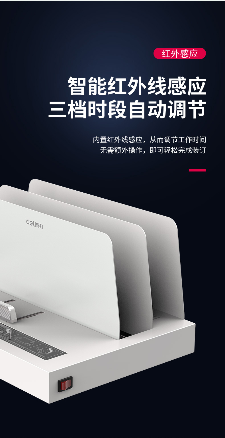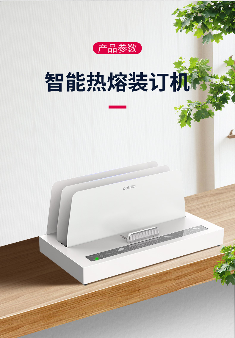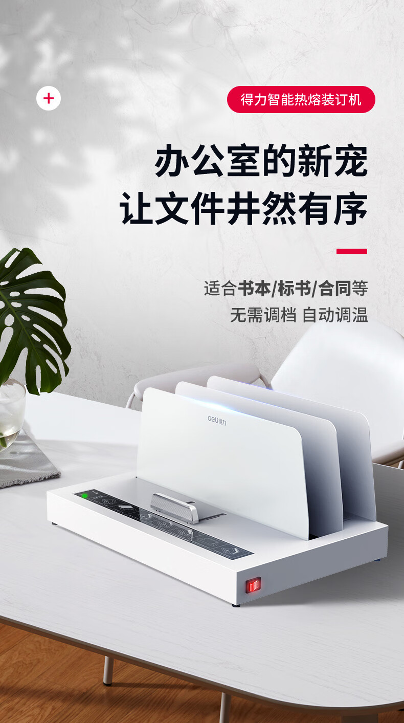 得力(deli) 熱熔財(cái)務(wù)裝訂機(jī) 合同標(biāo)書檔案資料文件膠裝機(jī) (可裝訂50mm)高端熱熔裝訂機(jī)