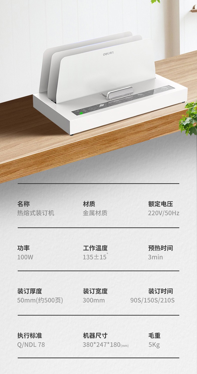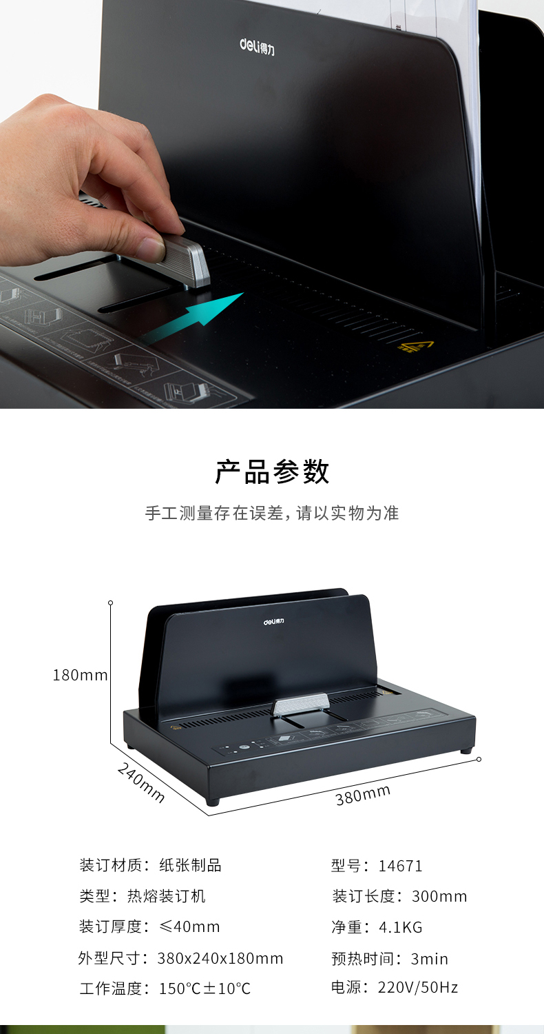 得力/deli 14671 裝訂及打孔類 熱熔裝訂機合同財務會計憑證裝訂機封套膠裝機全自動標書 14671熱熔裝訂機(裝訂厚度40mm)