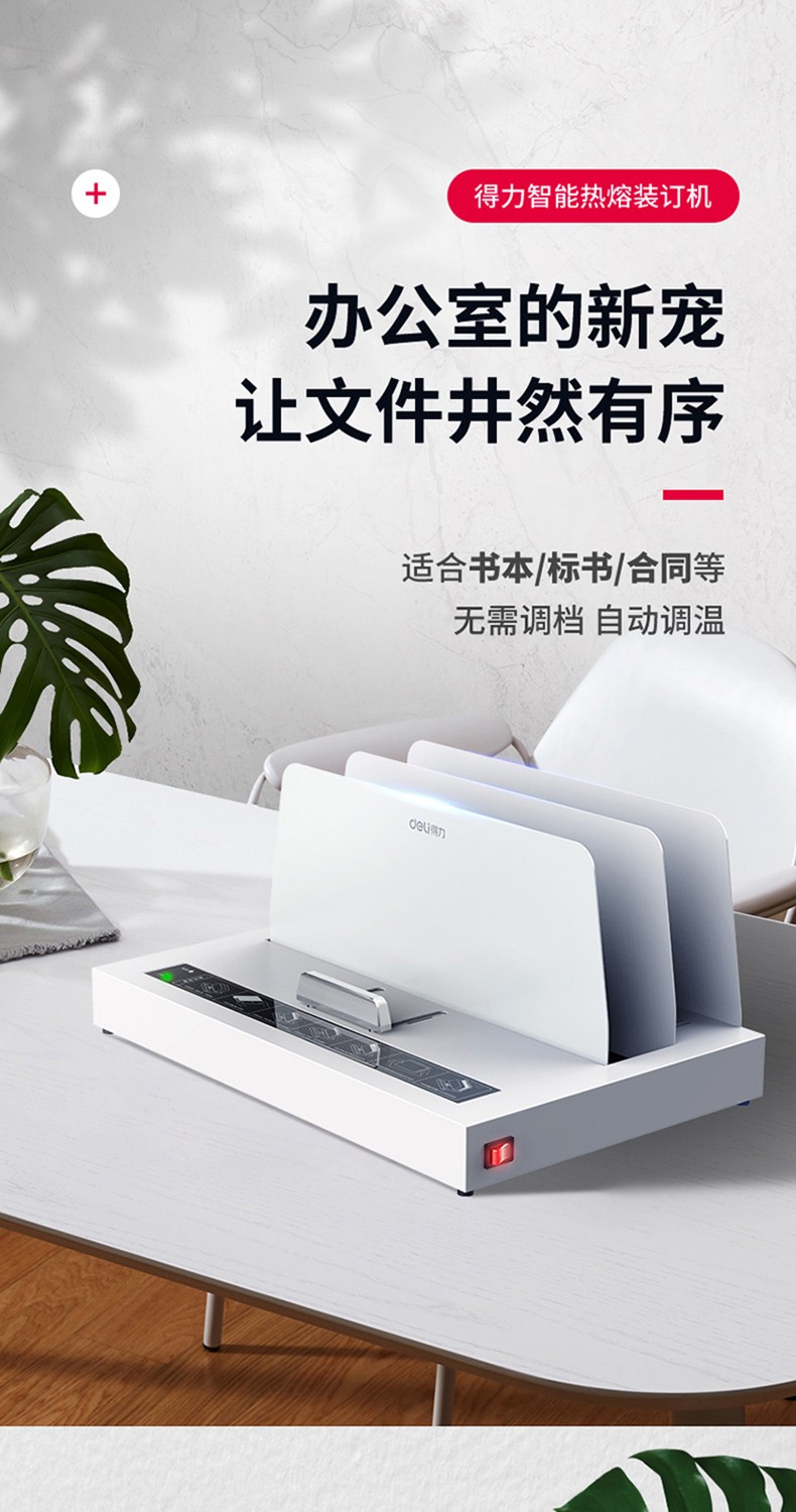 得力(deli) 熱熔裝訂機合同財務會計憑證裝訂機封套膠裝機全自動標書 14671熱熔裝訂機(裝訂厚度40mm)
