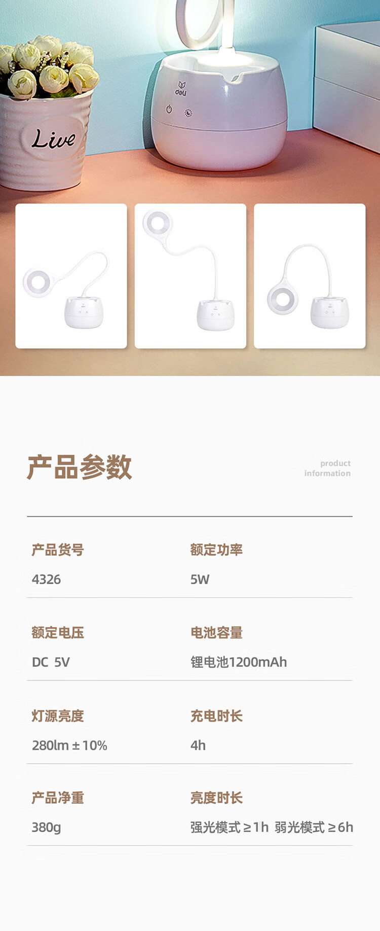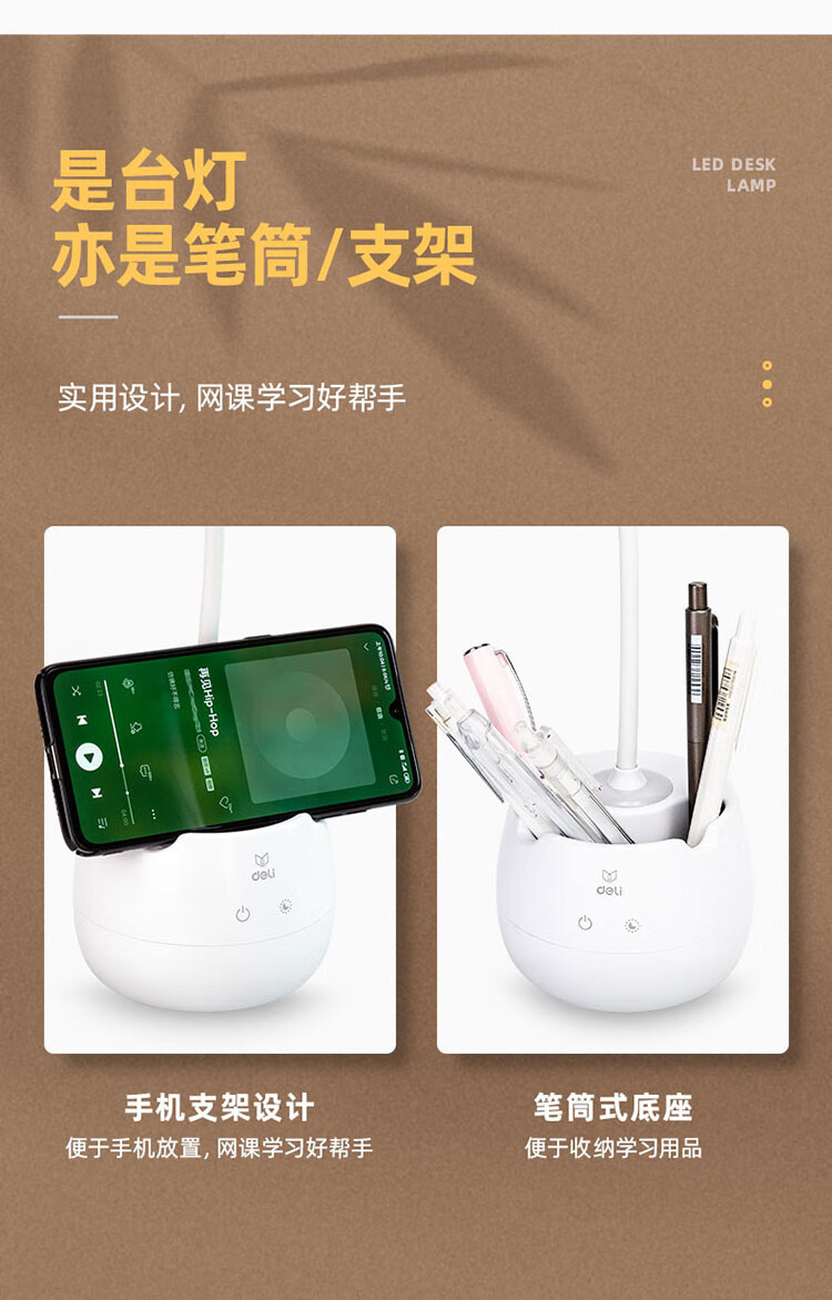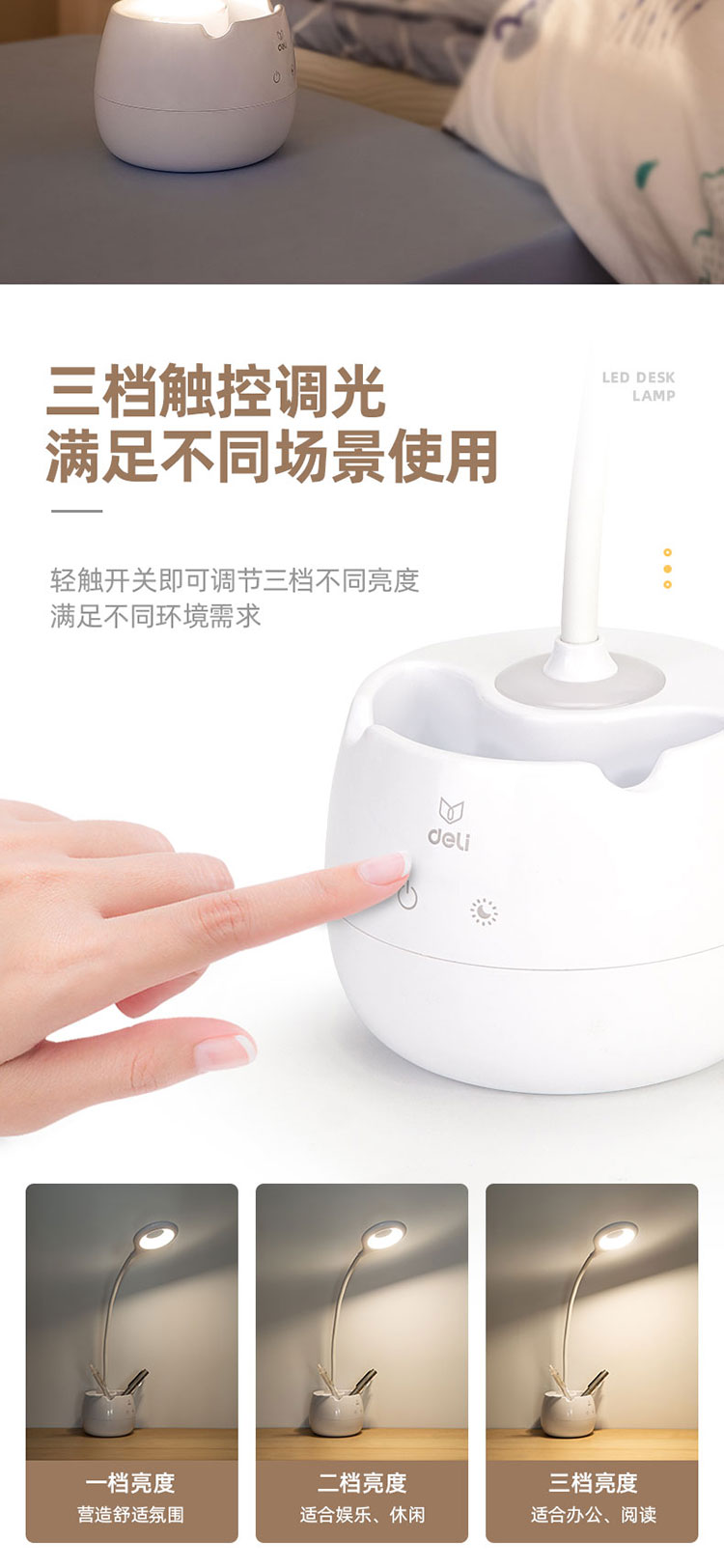 得力/deli 4326 臺(tái)燈/壁燈/床頭燈/落地?zé)?帶筆筒創(chuàng)意臺(tái)燈 3檔調(diào)節(jié)可當(dāng)夜燈 開學(xué)升學(xué)季禮物