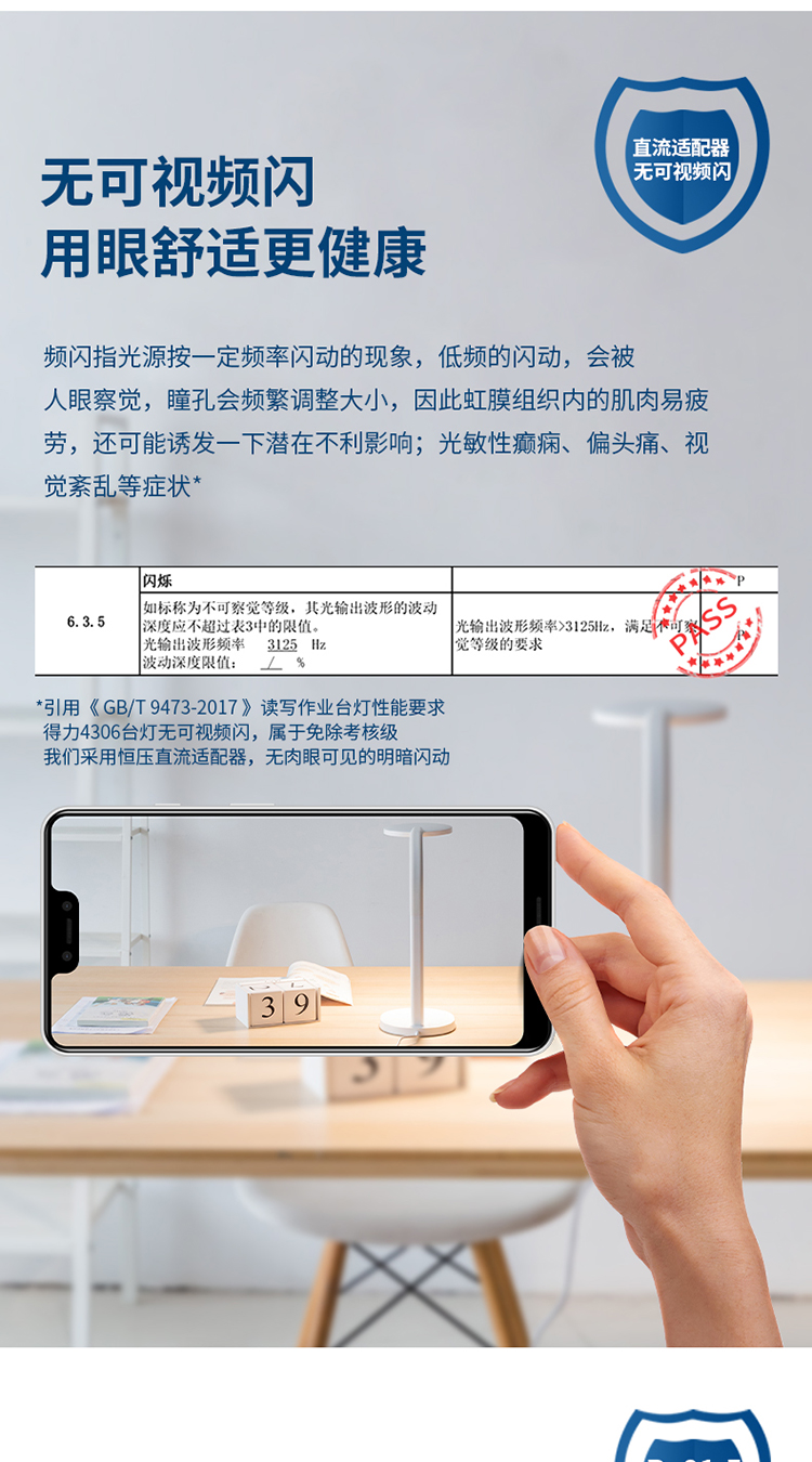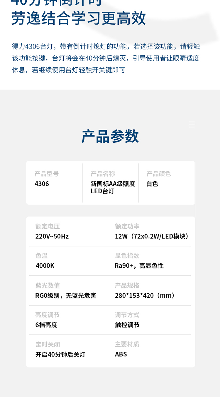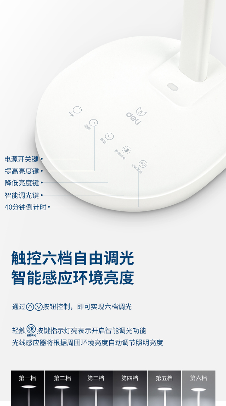 得力(deli)AA級減藍(lán)光護(hù)眼臺燈LED臺燈 智能感光工作閱讀學(xué)生學(xué)習(xí)臺燈 4306