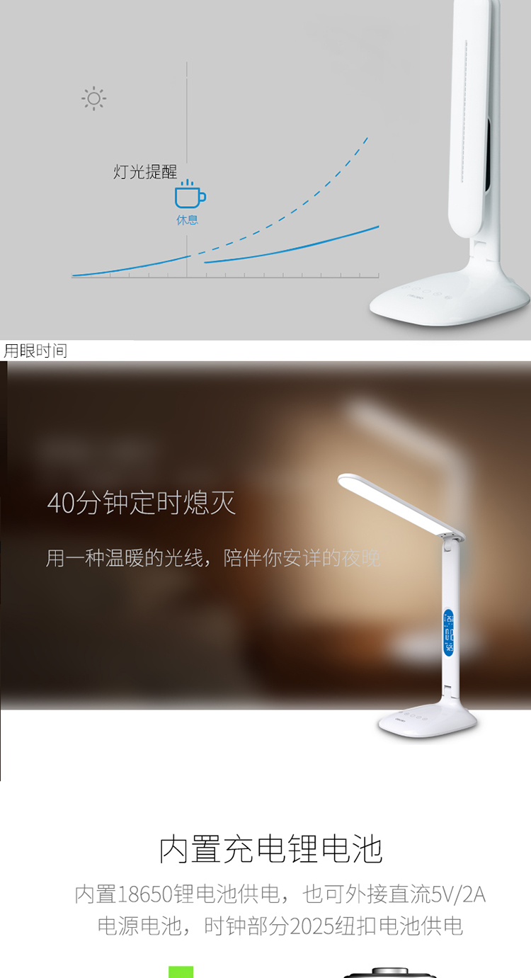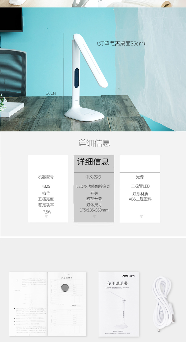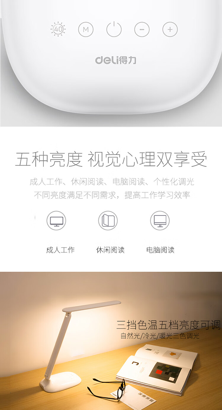 得力/deli 4325 臺(tái)燈/壁燈/床頭燈/落地?zé)?鋰電池LED可充電學(xué)習(xí)臺(tái)燈 時(shí)間鬧鐘臥室床頭燈 可調(diào)光調(diào)色