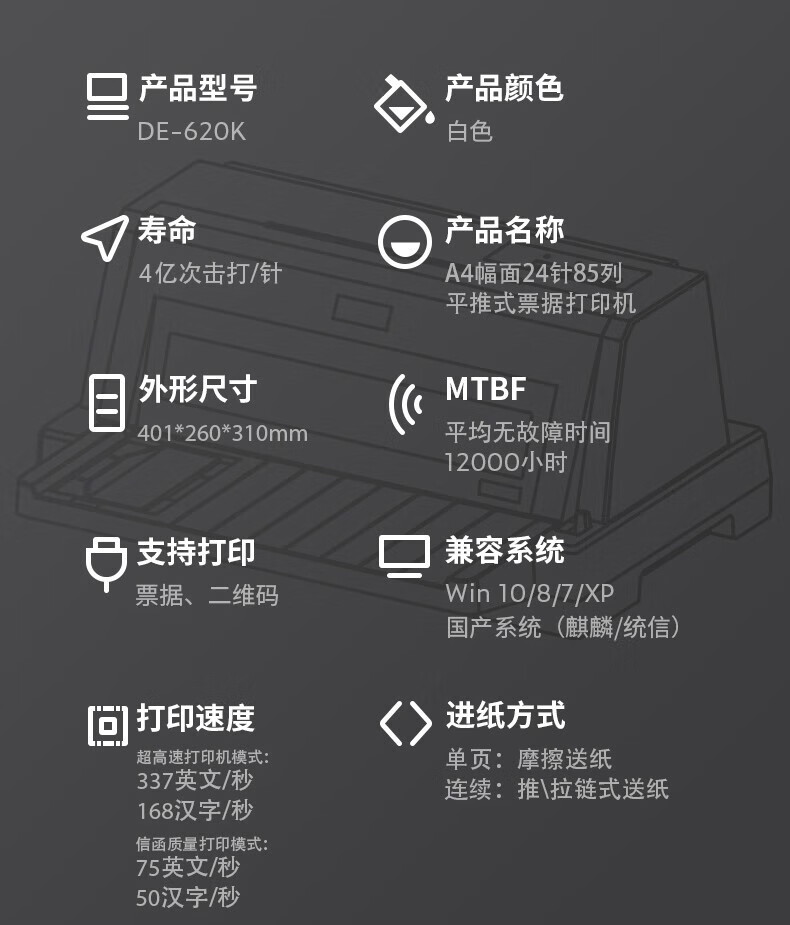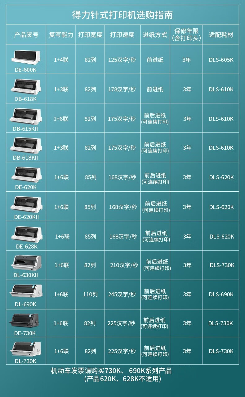 得力(deli) 針式打印機(jī) 營改增稅控發(fā)票打印機(jī) 票據(jù)電子面單快遞單條碼 發(fā)貨出庫打印機(jī) DE-628K【7聯(lián)85列】前后進(jìn)紙