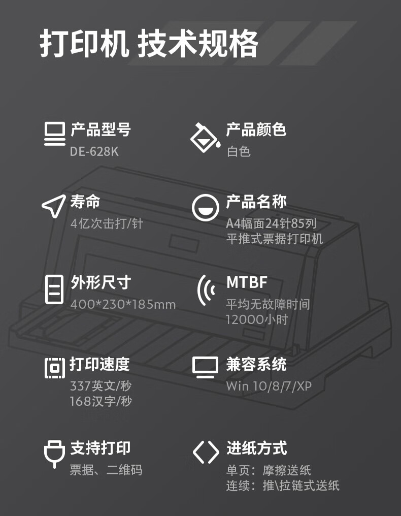 得力/deli DE-628K 票據(jù)打印機(jī) 針式打印機(jī) 營改增稅控發(fā)票打印機(jī) 票據(jù)電子面單快遞單條碼 發(fā)貨出庫打印機(jī) 【7聯(lián)85列】前后進(jìn)紙