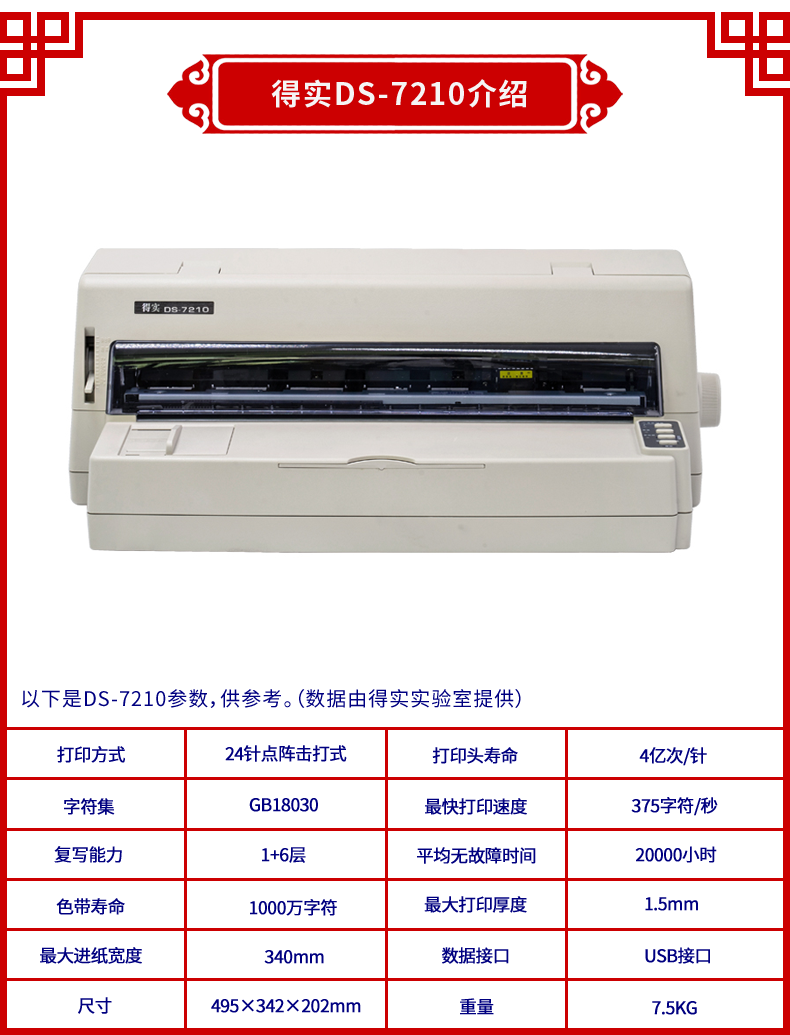 得實/DASCOM DS-7210 票據(jù)打印機(jī) 24針平推證薄 票據(jù)打印機(jī) 支持國產(chǎn)麒麟統(tǒng)信系統(tǒng)