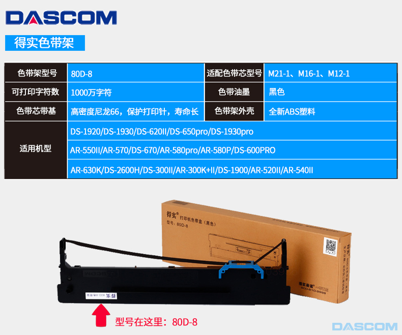 得實(shí)(Dascom)80D-8 色帶架 適用于AR-630K/DS-1920等型號(hào)(更多適配型號(hào)見商品介紹)