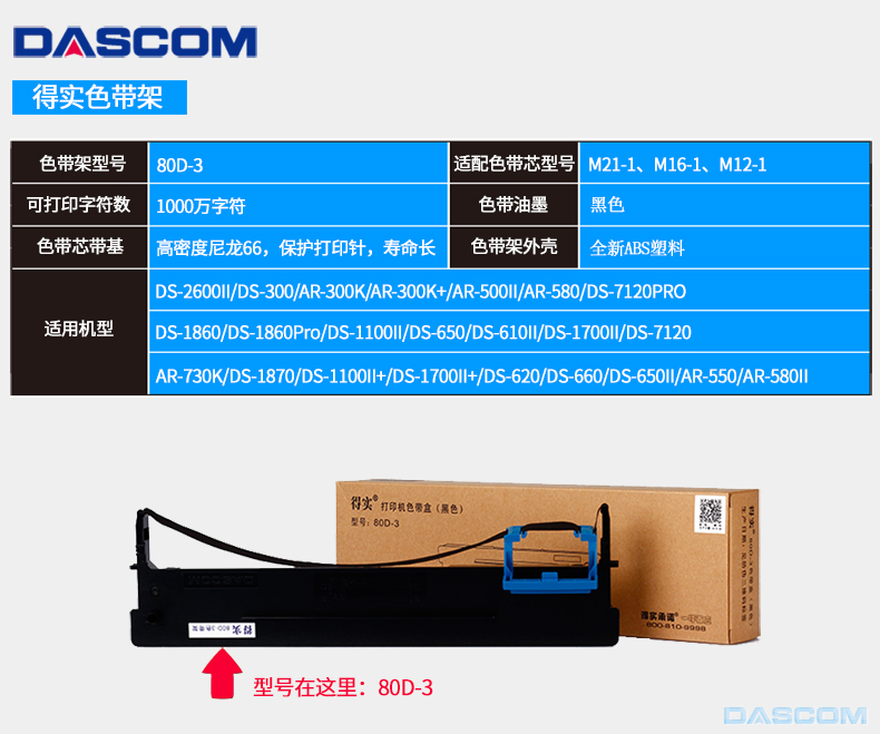 得實(shí)/DASCOM 80D-3 色帶、碳帶 色帶架 適用于AR-730K/DS-1870/DS-1100II+/DS-1700II+等型號(更多型號見商品介紹)